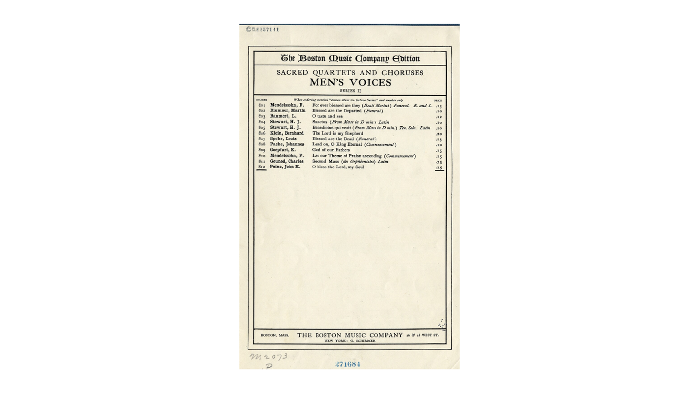 | Genre Categories | Anthems; Religious works; For male chorus, organ; |