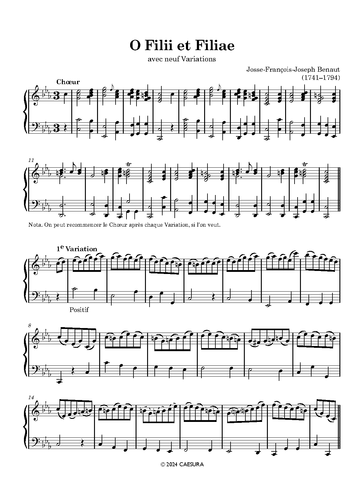 | Alternative. Title | O Filii et Filiæ avec neuf variations arrangées pour l'orgue |