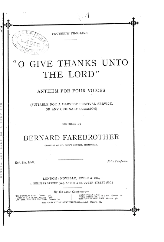 | Work Title | O Give Thanks unto the Lord |