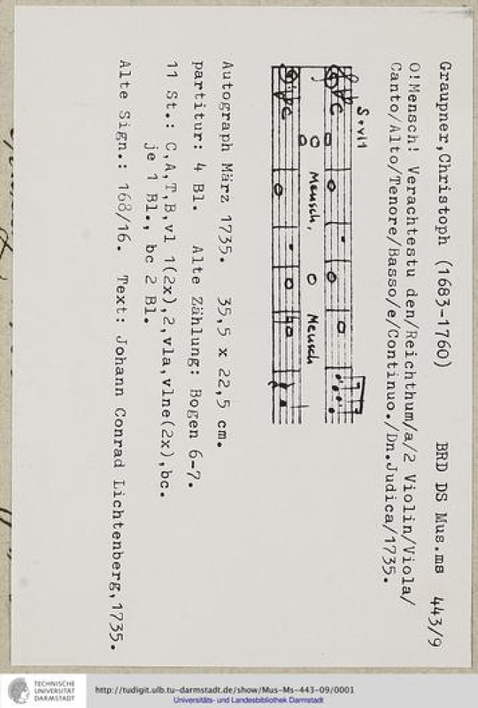 | Work Title | O Mensch! Verachtestu den Reichthum |