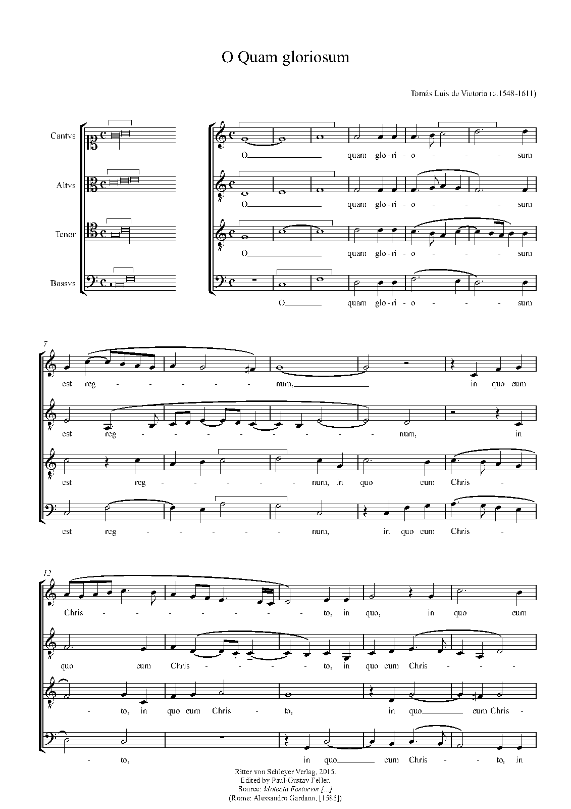 | Related Works | Used as the model for the Missa O quam gloriosum published 1583. |