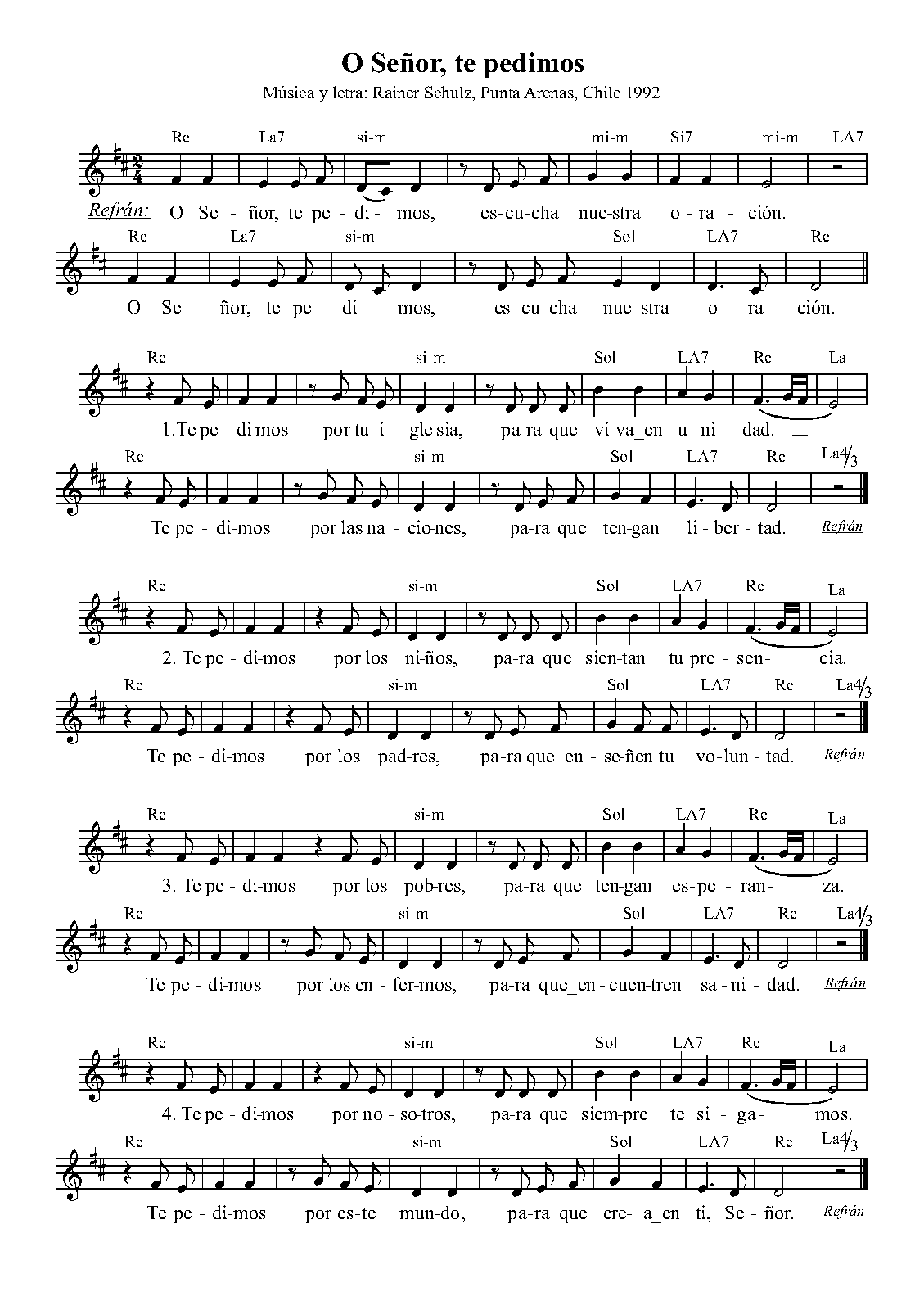 | Work Title | O Señor, te pedimos |
