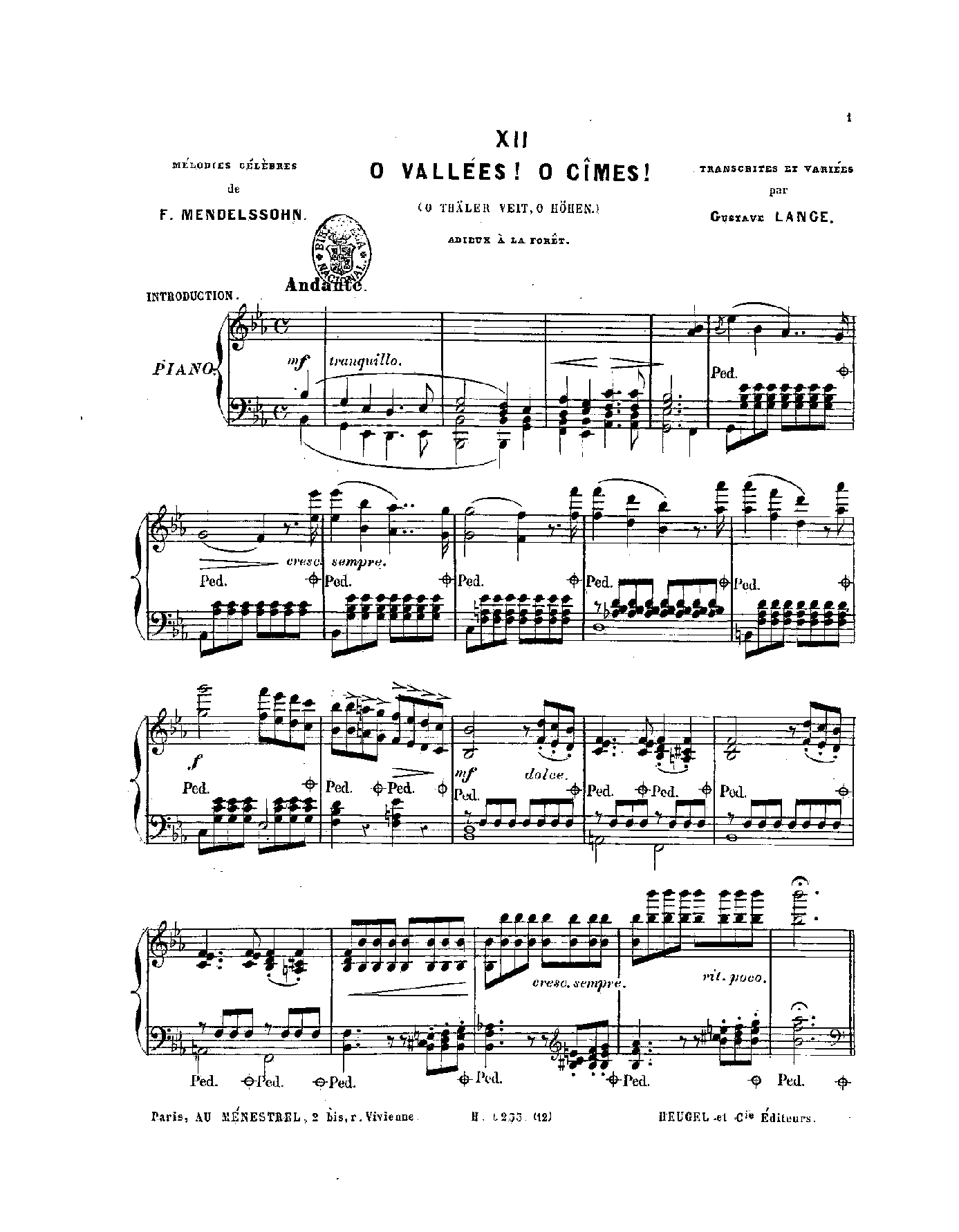 Mélodies célèbres de F. Mendelssohn. Paris: Heugel, n.d.[1877]. Plate H.6233.(12).