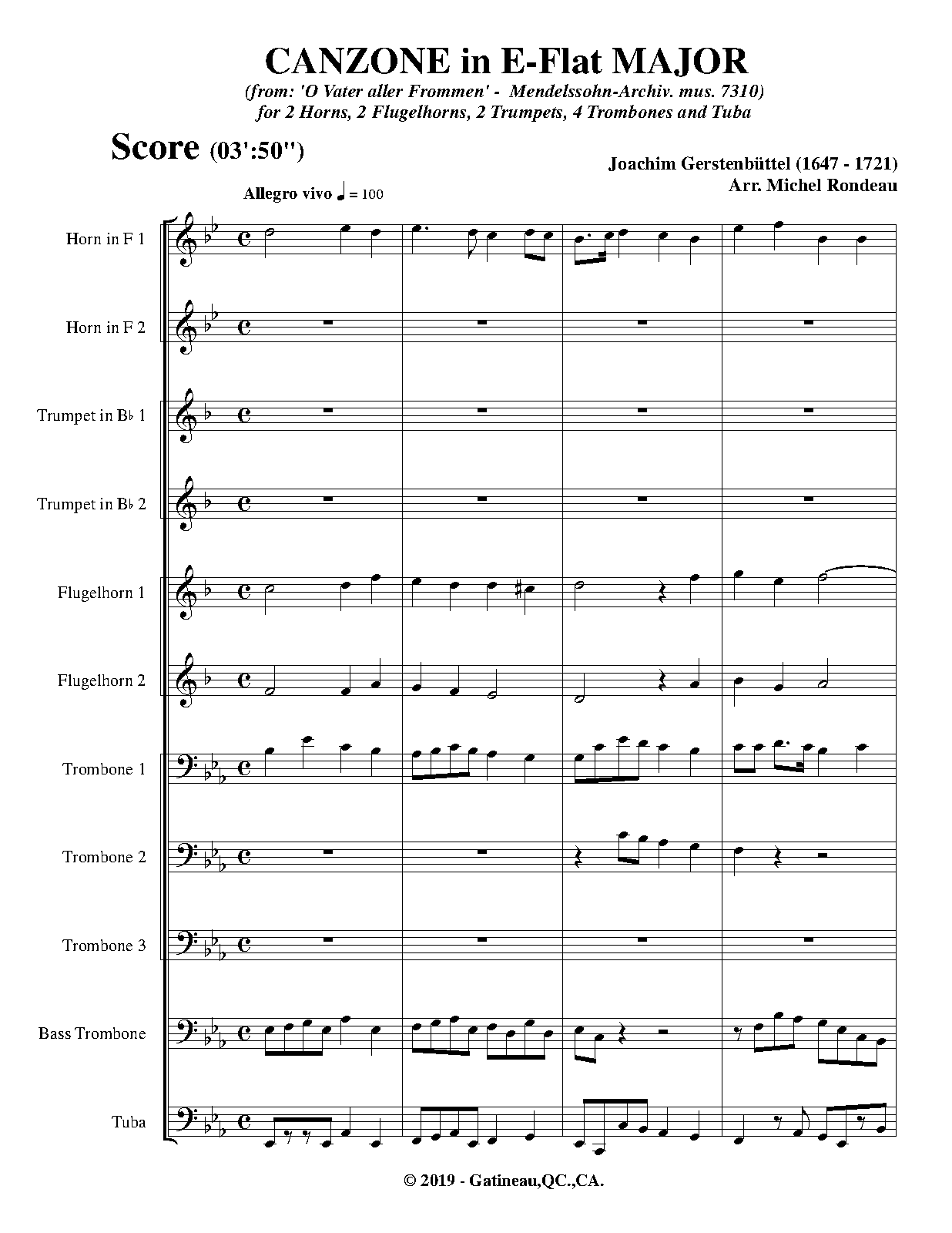 For 2 Horns, 2 Flugelhorns, 2 Trumpets, 4 Trombones and Tuba (Rondeau)