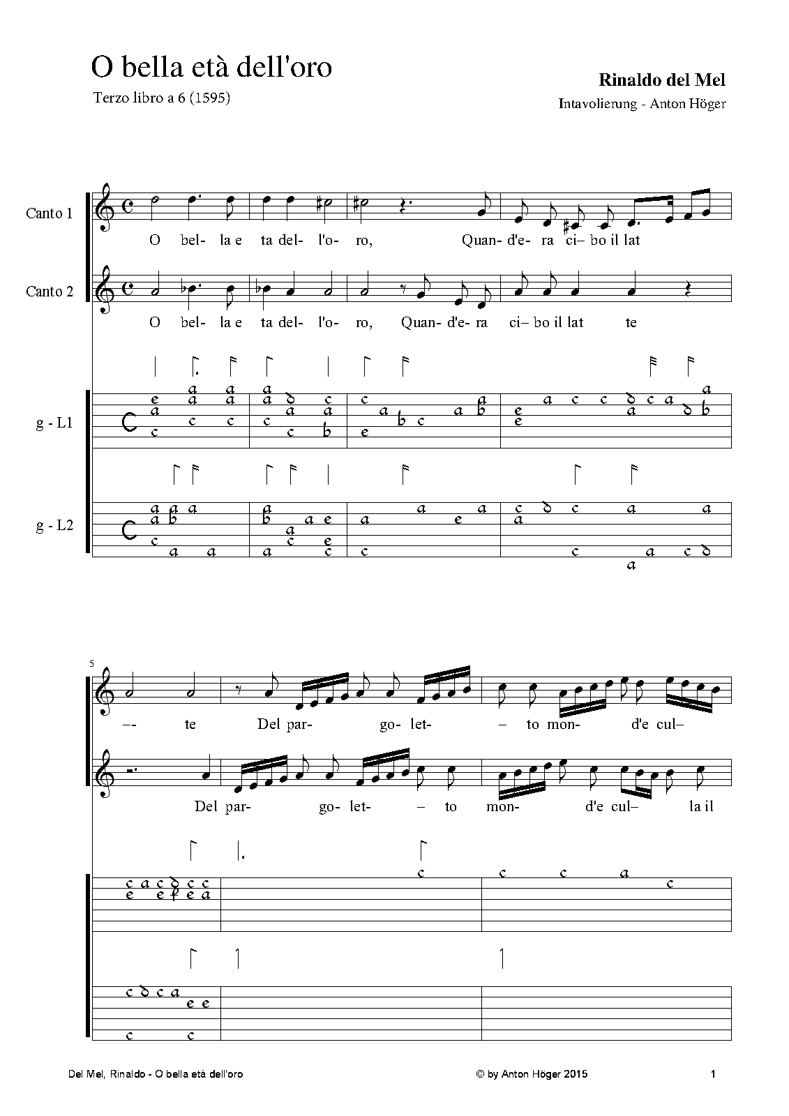 | Opus/Catalogue NumberOp./Cat. No. | Rinaldo del Mel, Terzo libro a 6 (1595) |