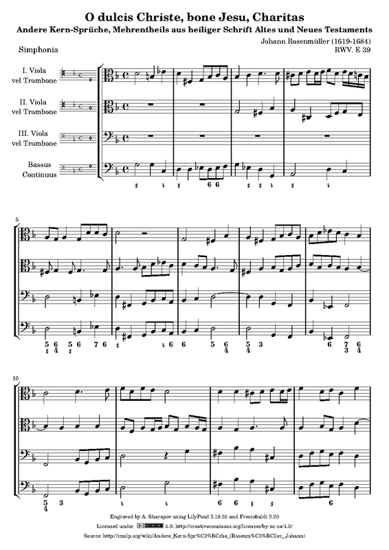 Instrumentation soprano, alto, 3 viols or trombones, continuo