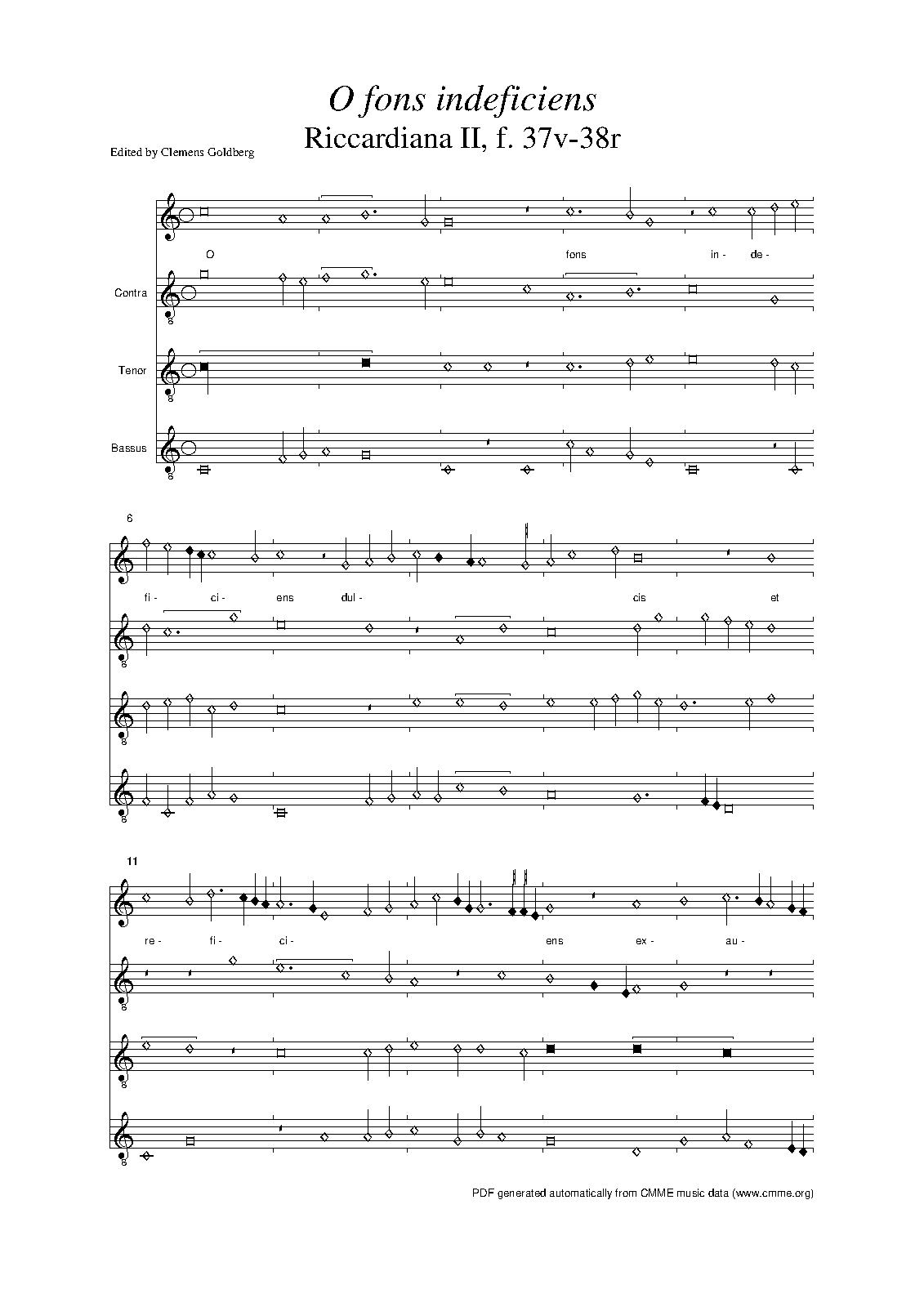 | Work Title | O fons indeficiens dulcis et reficiens |