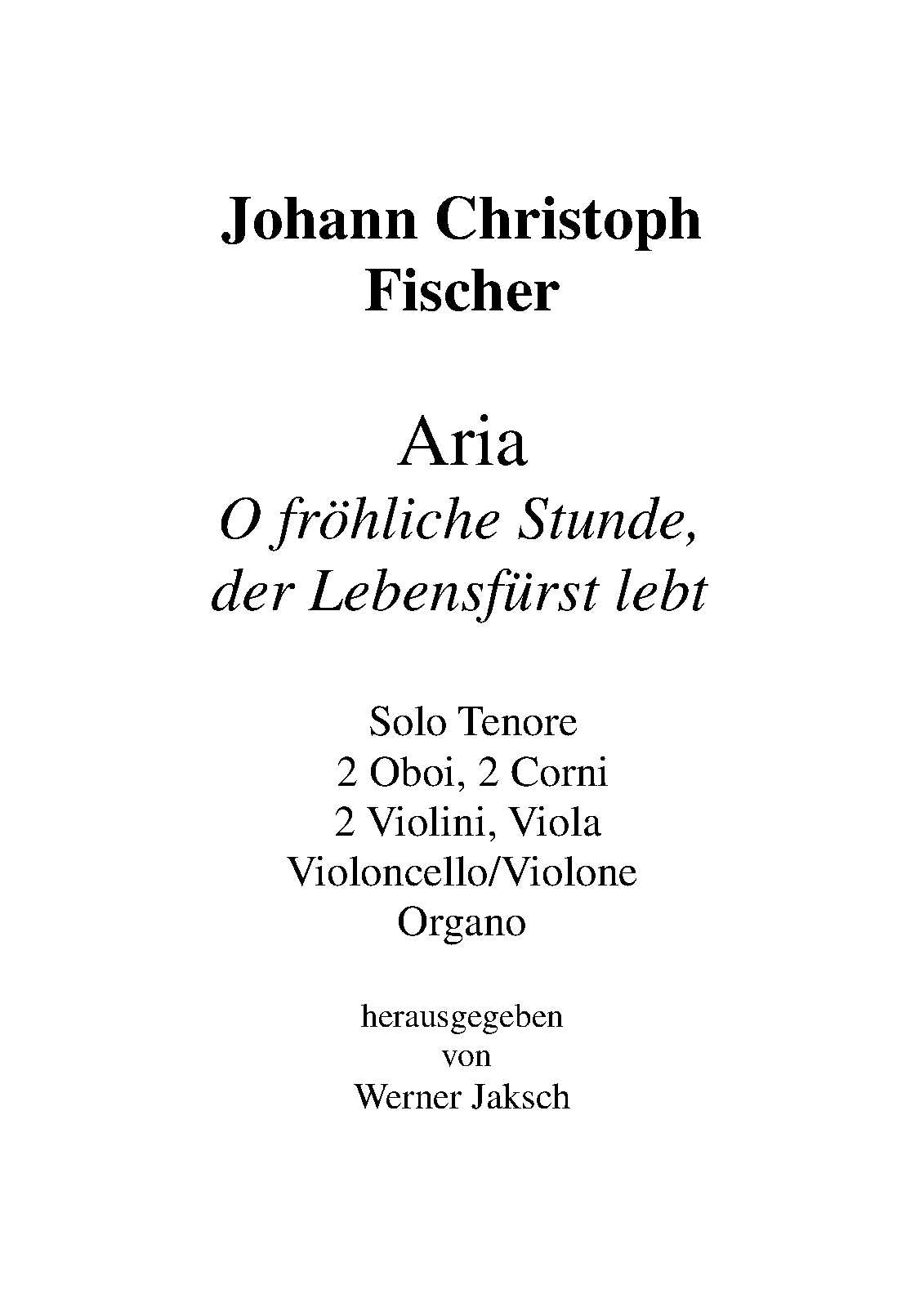 | Extra Information | Aria from an unknown cantata of Johann Christoph Fischer, formerly attributed to Telemann |