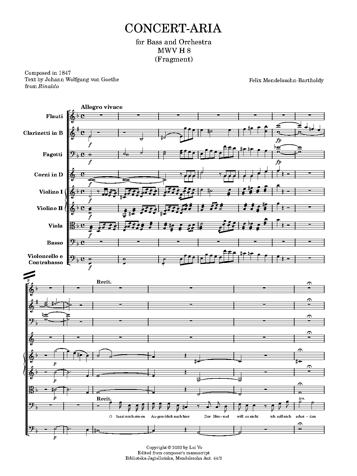 | Extra Information | Fragment, set to text from Rinaldo by Johann Wolfgang von Goethe. Possibly a second version of MWV H 7. |