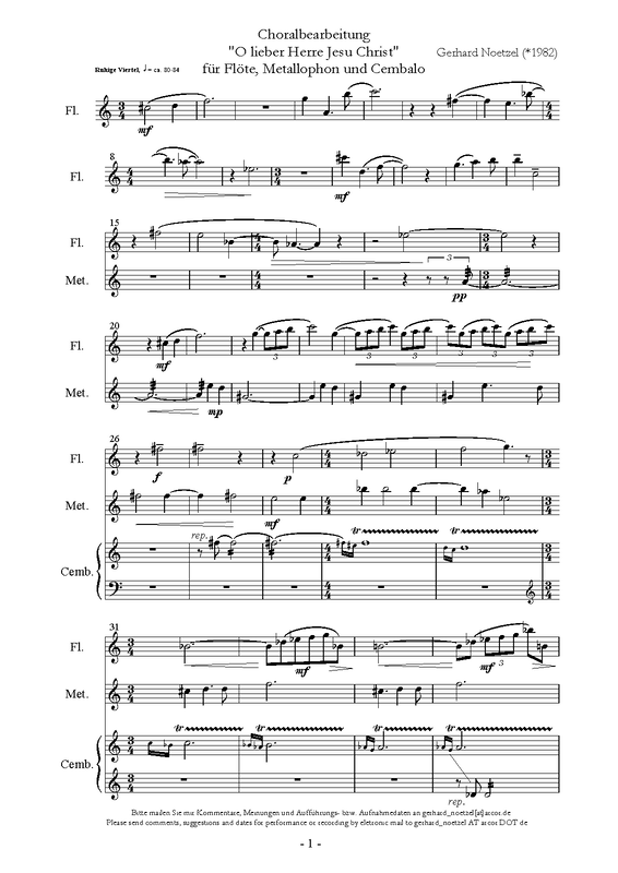 | Alternative. Title | Choralbearbeitung für Flöte, Metallophon und Cembalo |