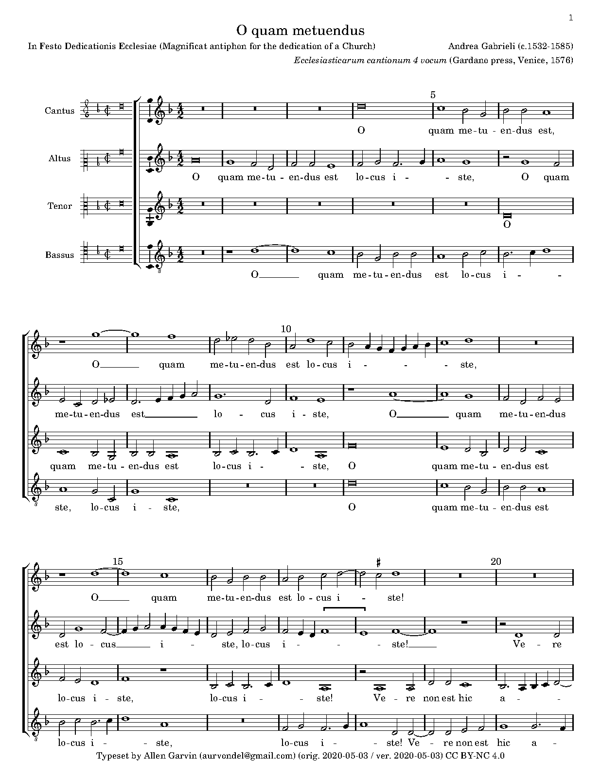 | First Publication | 1576 in Ecclesiasticarum cantionum 4 vocum (Venice: Gardano press), no.29 |