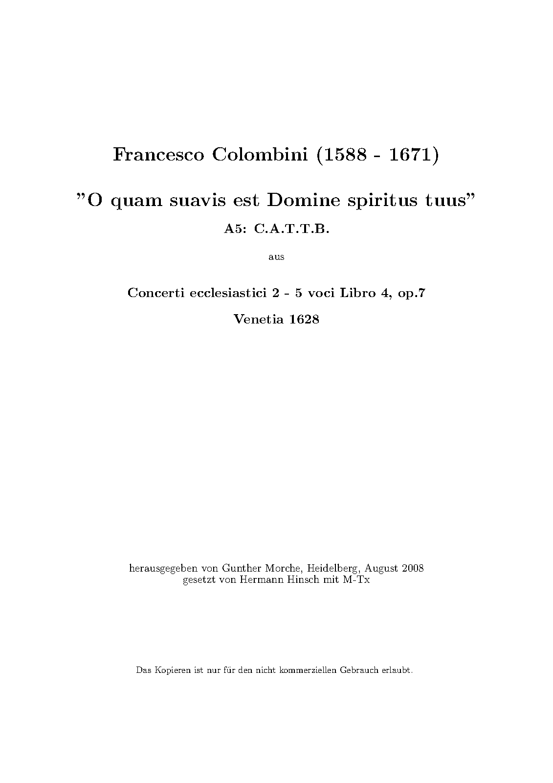 | Work Title | O quam suavis est Domine spiritus tuus |