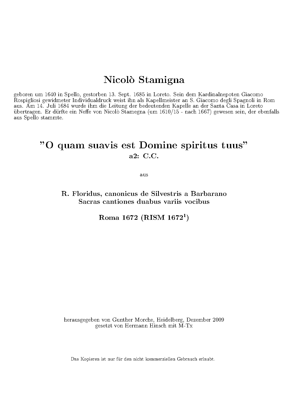 | Work Title | O quam suavis est Domine spiritus tuus |