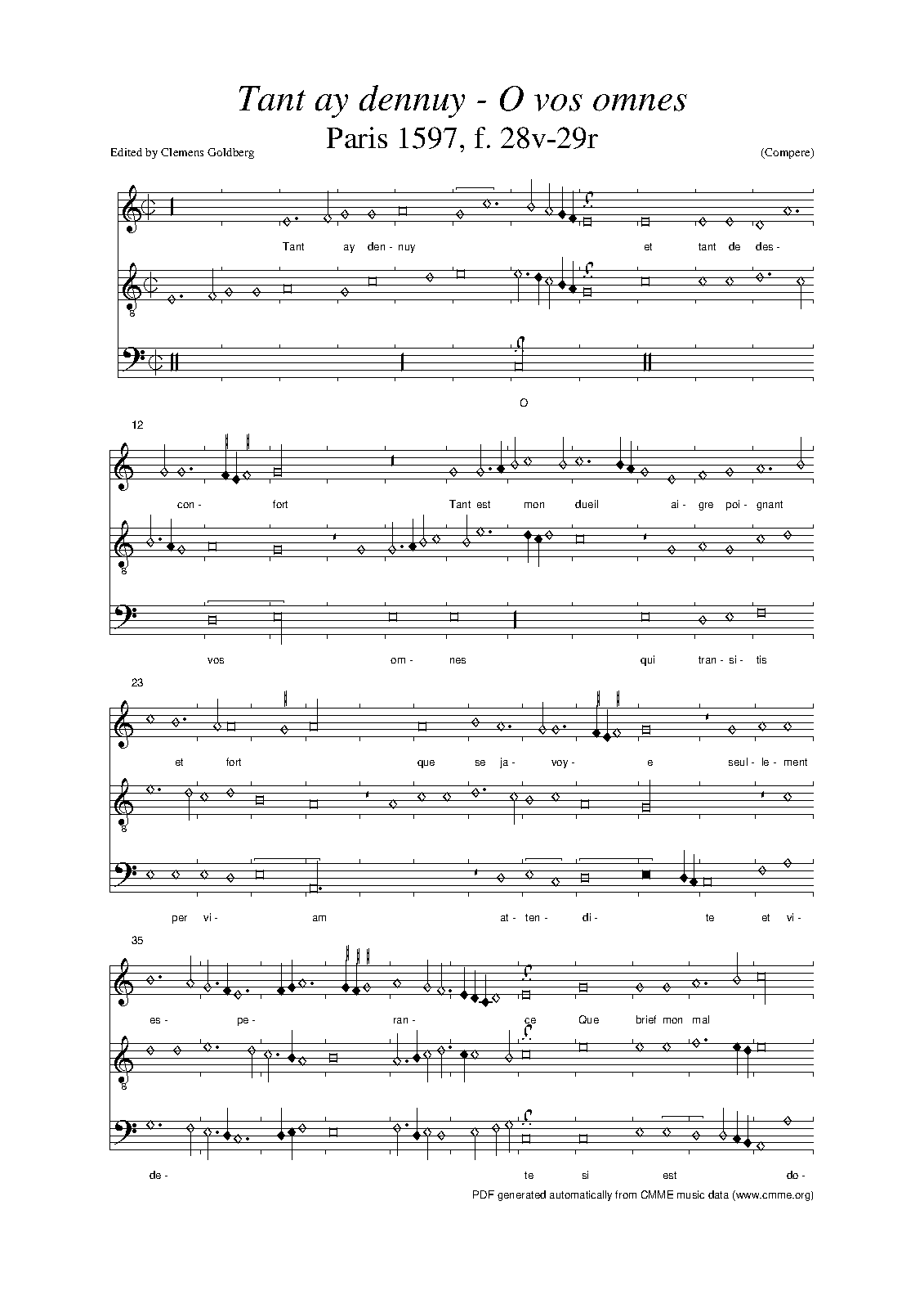 | Work Title | O vos omnes qui transitis / O devots cueurs |