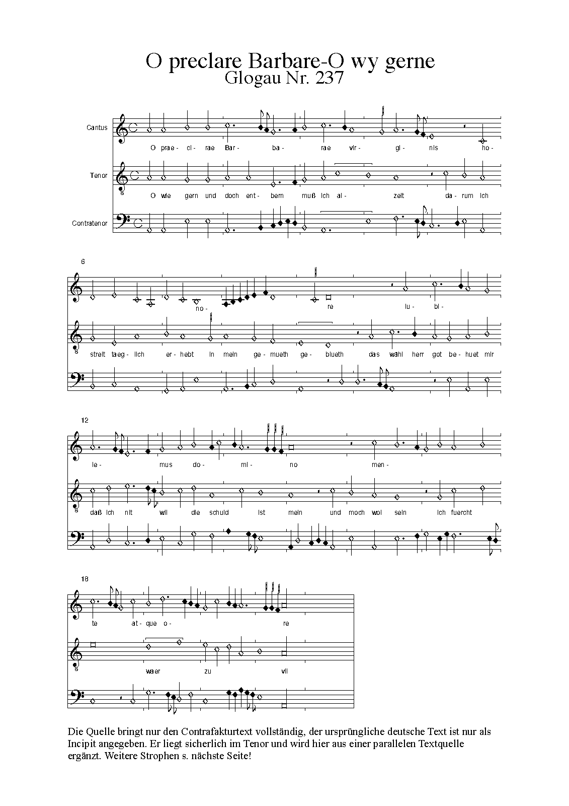 O wie gern und doch / O preclare Barbarae (Anonymous)