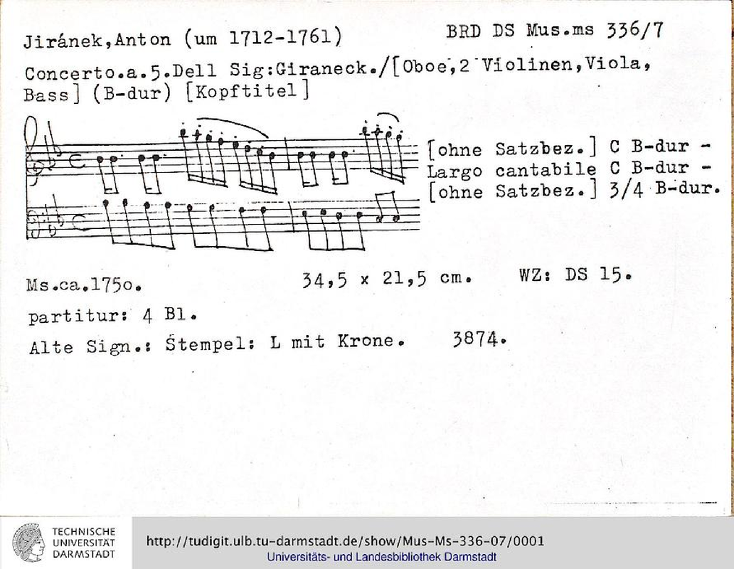 | Opus/Catalogue NumberOp./Cat. No. | KapM Jiranek 16 ; Mus Ms 336-7 |