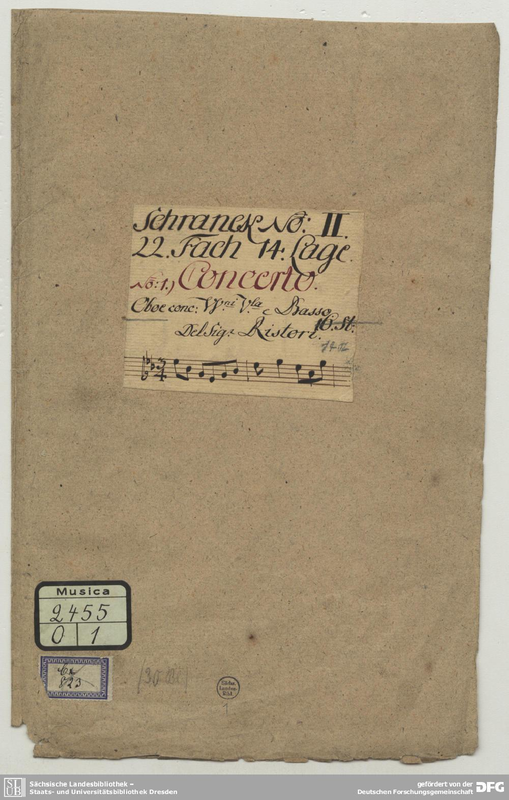 The D-Dl manuscript contains four identical bass parts, labelled "Basso", "Basso R(ipieno)" and "Fagotto (x2). These play only during the tutti sections. The part labelled "Organo" is the only bass part which accompanies the soloist in solo passages. In keeping with common practice, this part could be reinforced by a bass instrument (cello or bassoon for example). In the manuscript, solo and tutti sections are indicated by the use of "piano" and "forte" markings, however in this edition, these have been replaced with "solo" and "tutti"