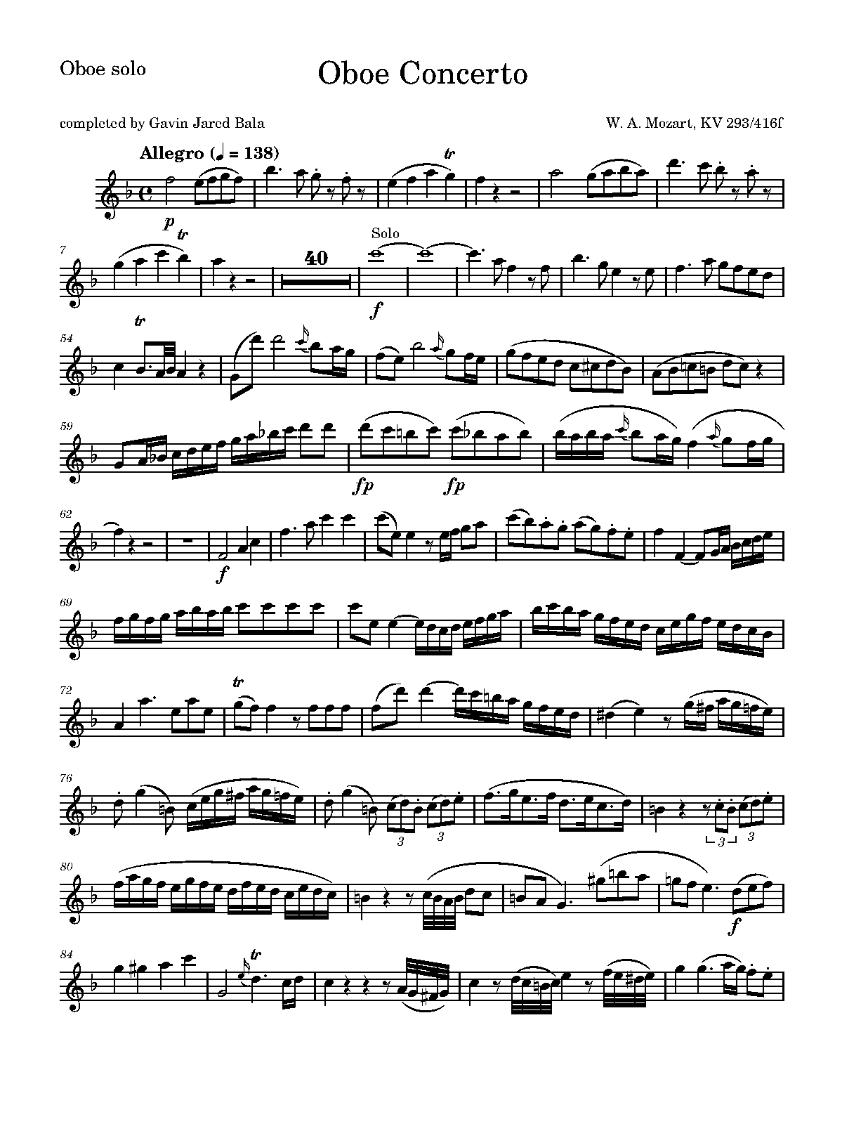 Oboe Concerto in F major, K.293/416f (Mozart, Wolfgang Amadeus)