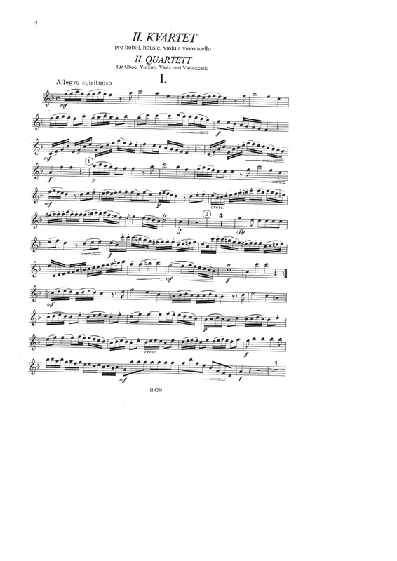 Instrumentation oboe, violin, viola, cello