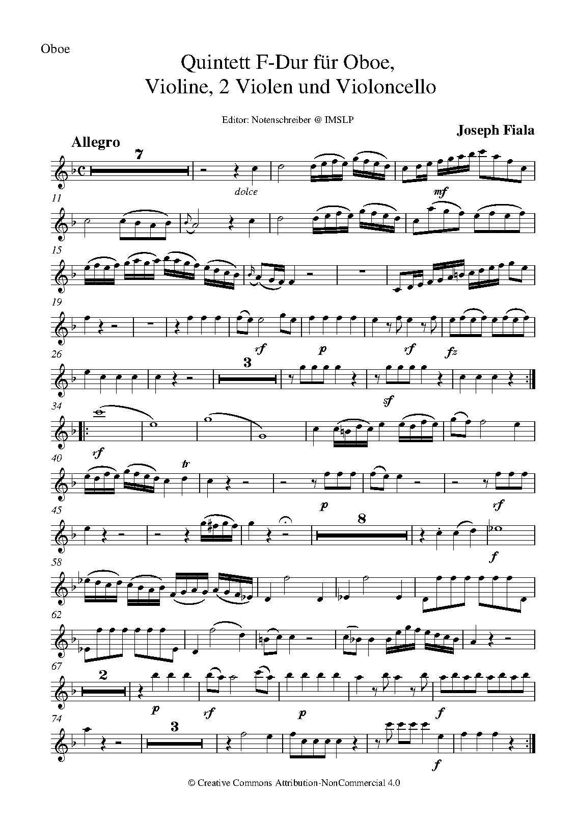 | Instrumentation | oboe (or flute), violin, 2 violas, cello |
