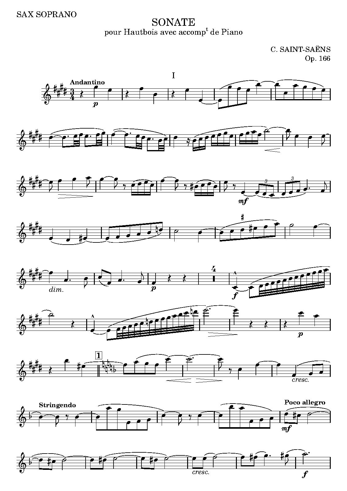 Sonata para oboe y piano (Saint Saens); Sonata para oboe y piano (Saint-Saens); Sonata para oboe y piano (Saint Saëns); Sonate für Oboe und Klavier op. 166; Oboensonate op. 166; Oboensonate D-Dur; Oboensonate in D-Dur; Oboe Sonata in D major, Op. 166; Sonate pour hautbois, op. 166; Sonate pour hautbois avec accompagnement de piano