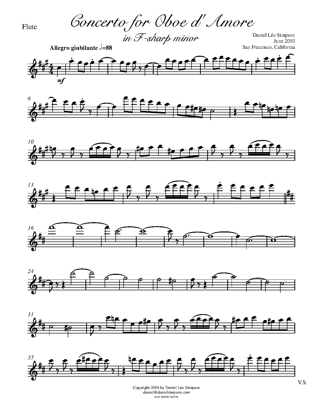 | Work Title | Oboe d'amore Concerto in F-sharp minor |