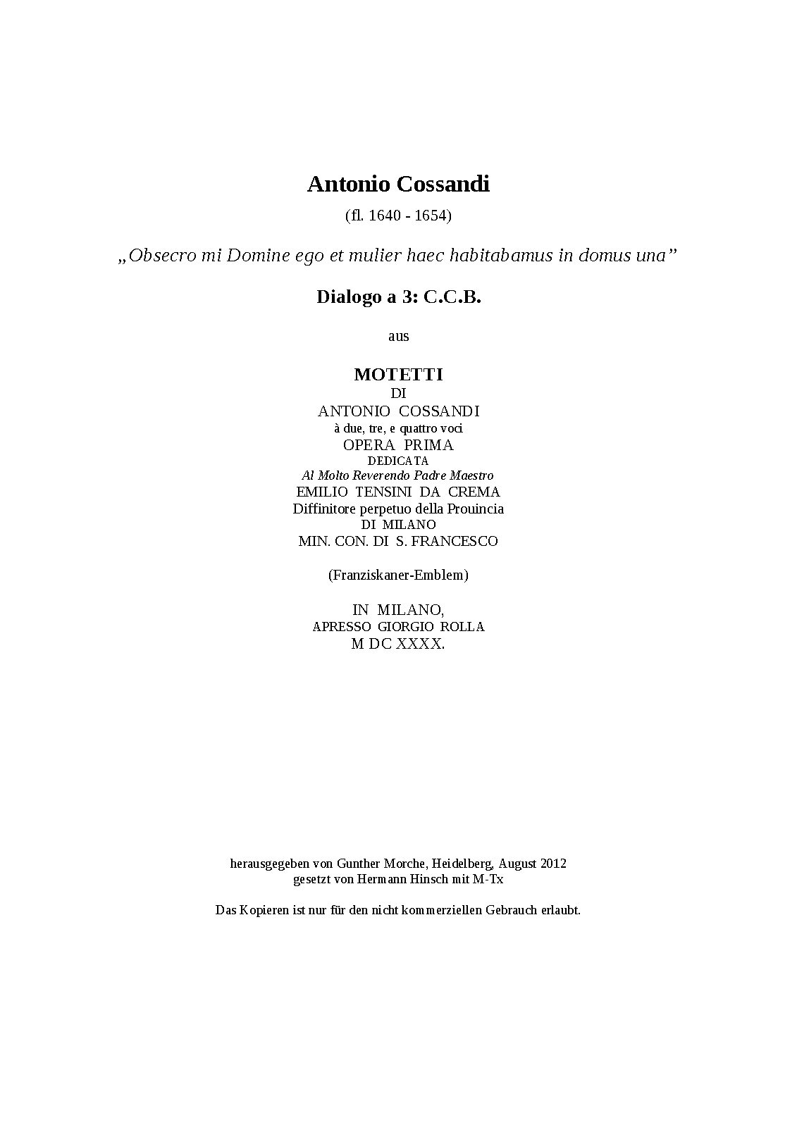 | Genre Categories | Motets; For 3 voices, continuo; For voices with continuo; |