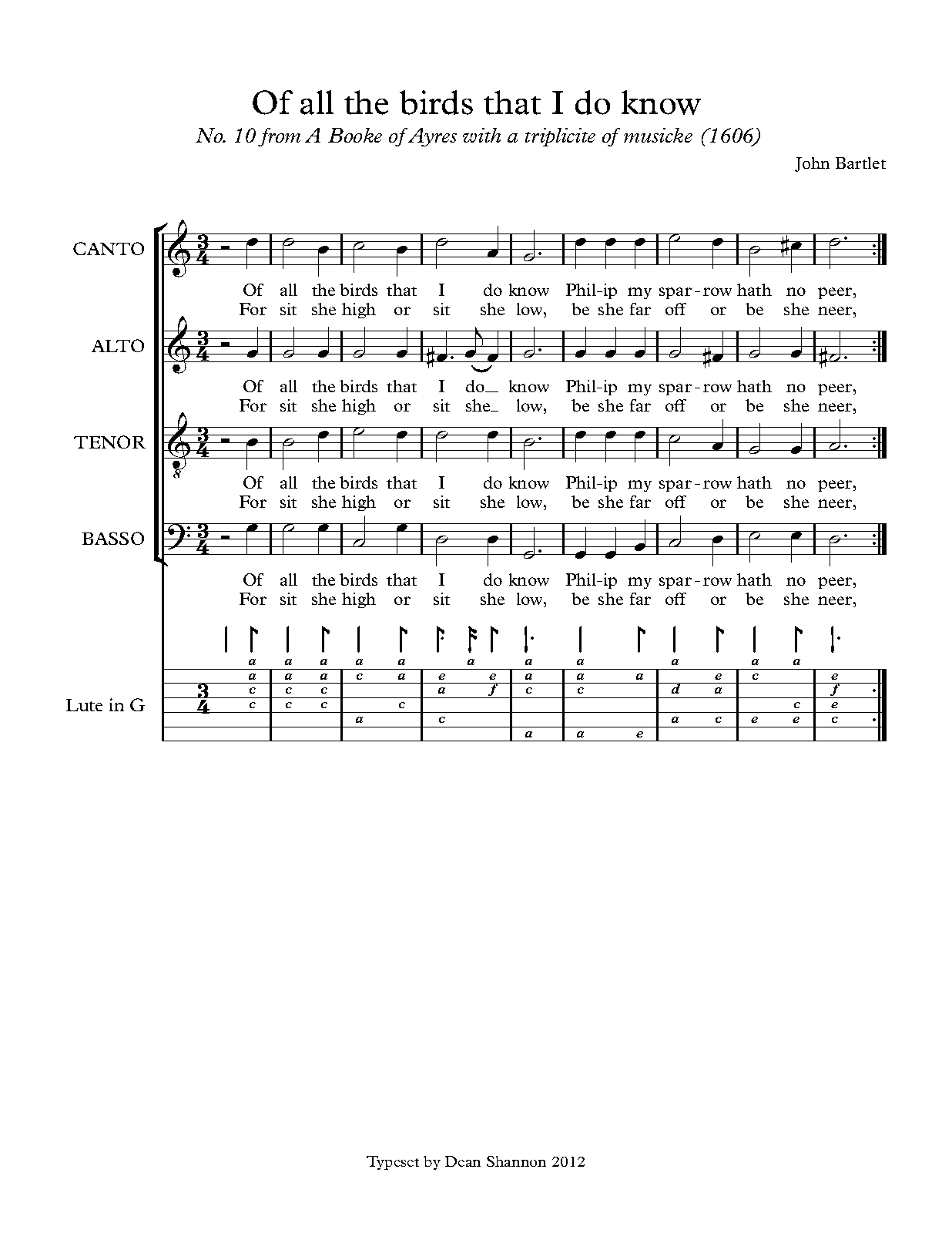 Voices set in Modern Notation, Lute (in G) set in tablature