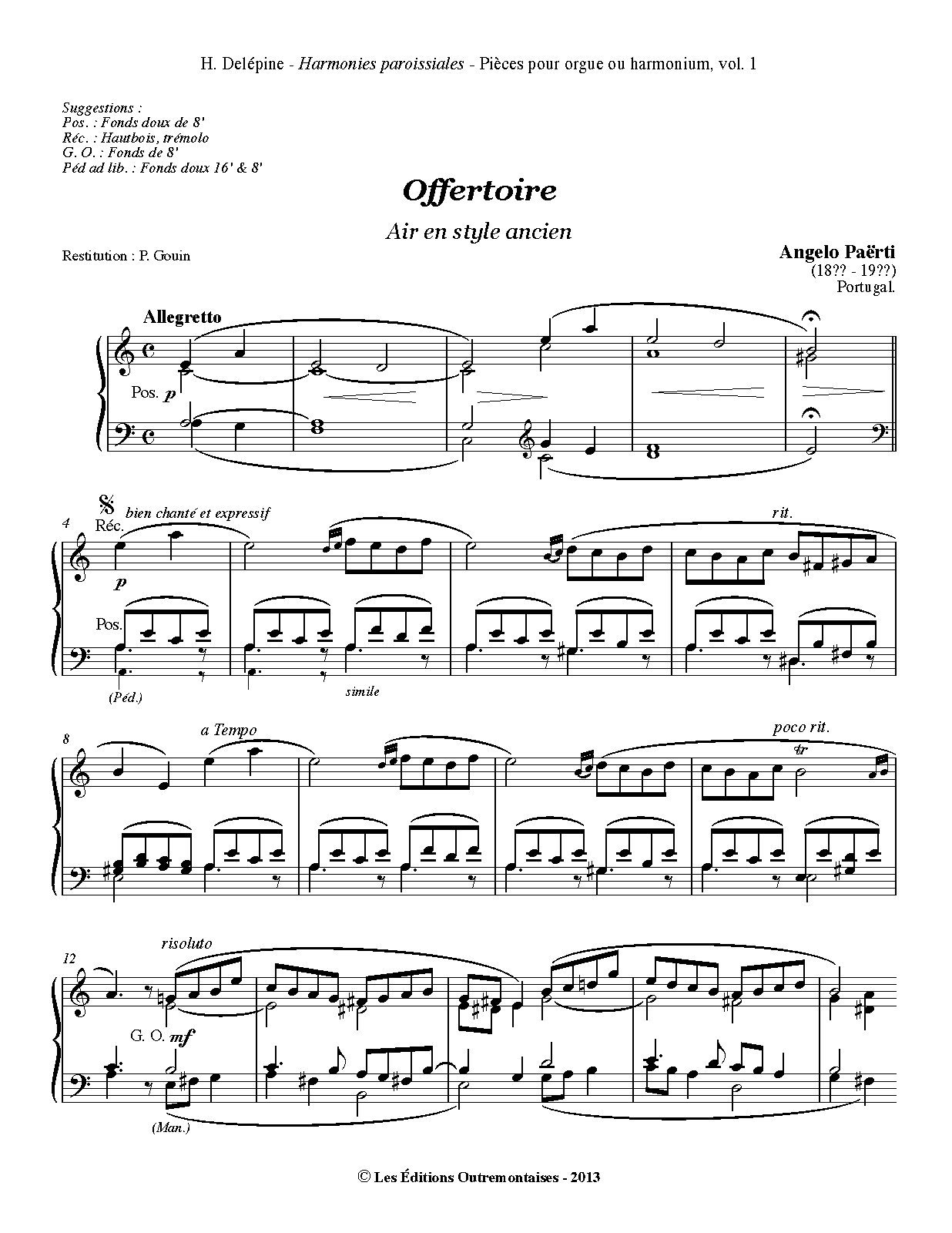 From Harmonies paroissiales - Pièces pour orgue ou harmonium choisies par l'Abbé Henri Delépine (1871-1956) - Vol. I.