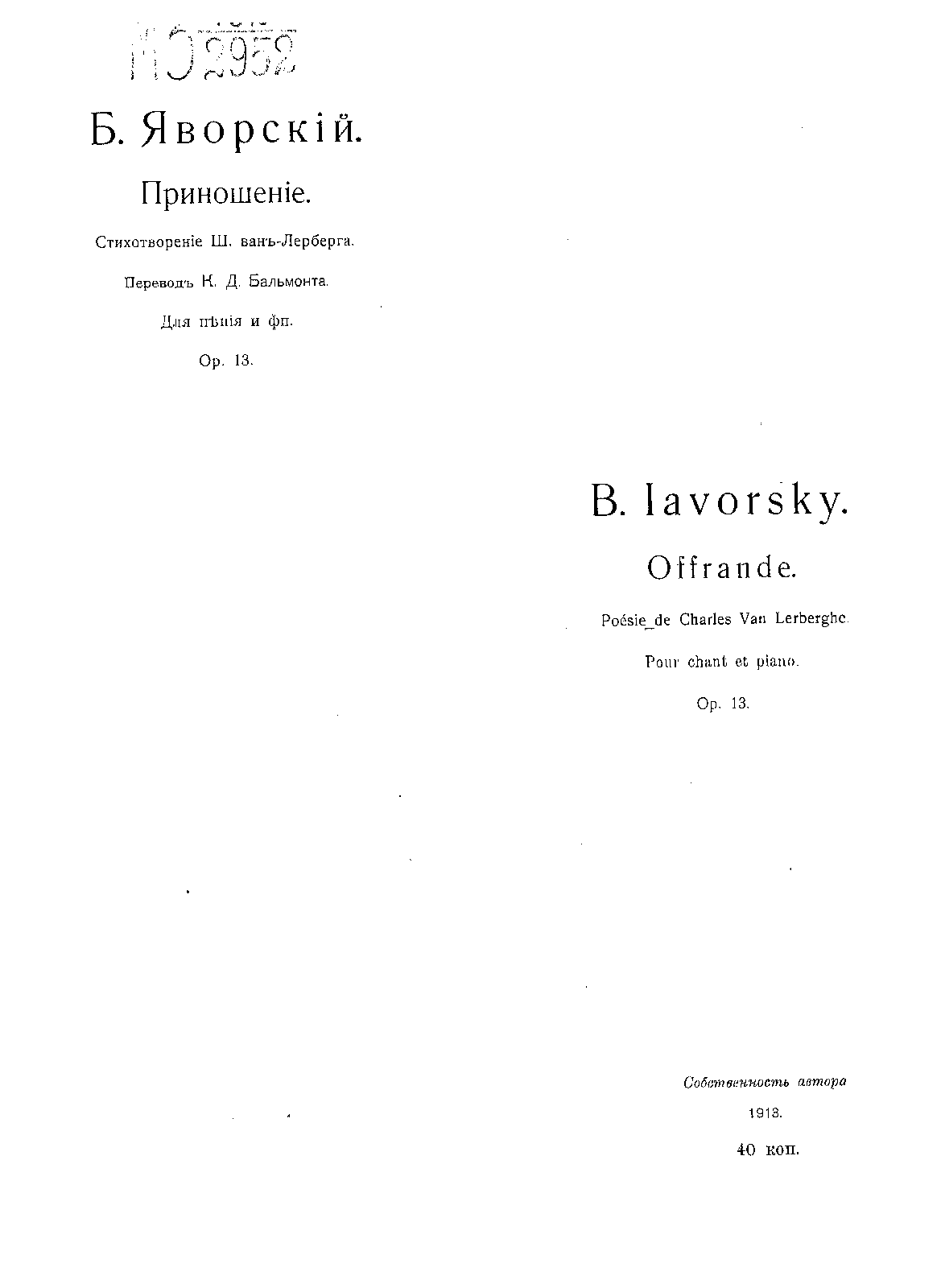 | Composer | Yavorsky, Boleslav |