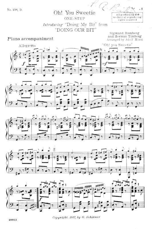 This was sung in the Broadway revue Doing Our Bit, but it is unknown whether this was a revue of loosely connected or unconnected individual songs (in which case all the songs should have individual pages), or more like an operetta or musical, with a plot and a unified story line and connected songs, in which case, this page should be renamed for the whole work