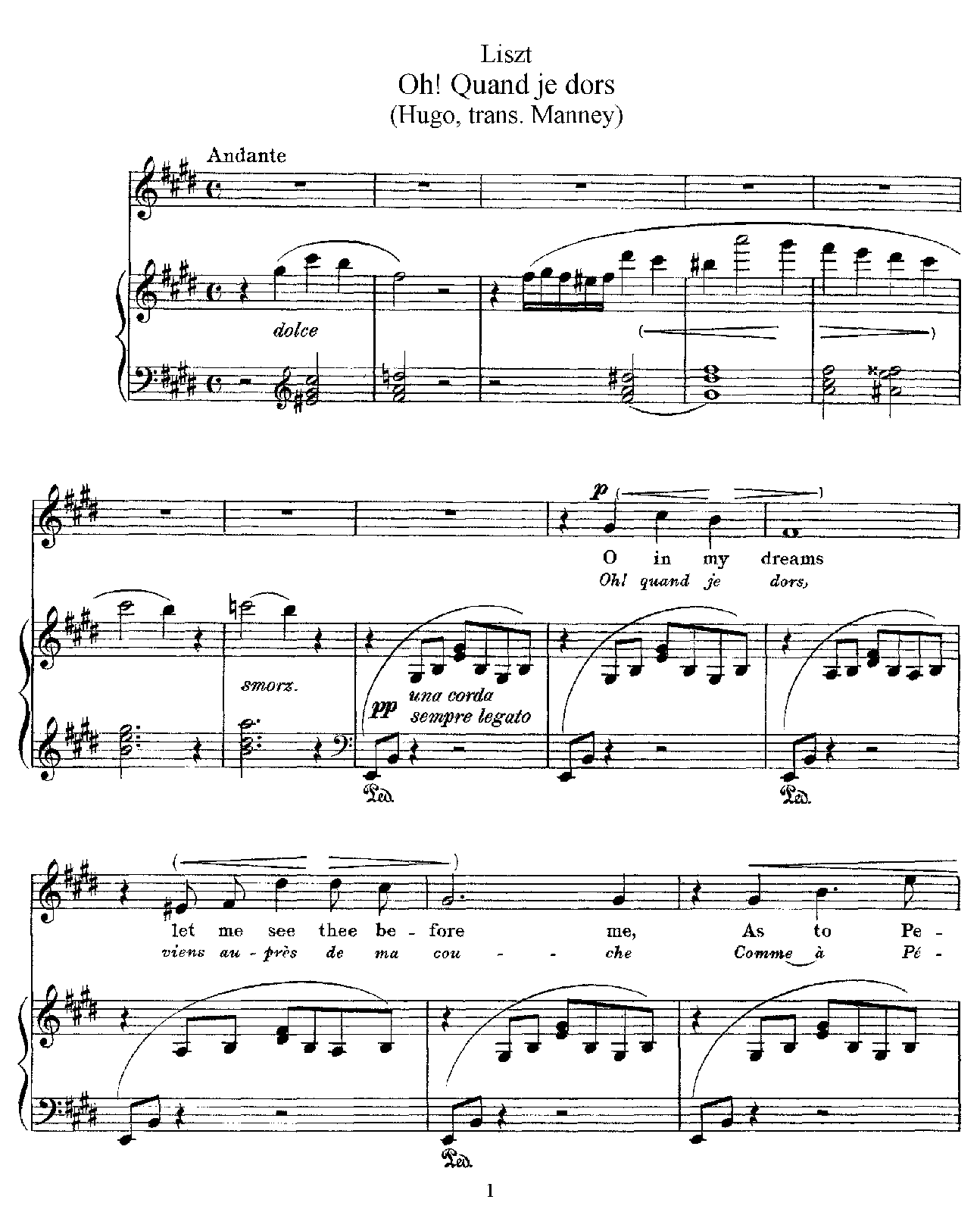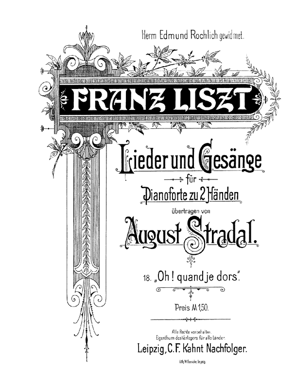 - Composed for soprano or tenor voice and piano, 1842 (= 1st version, S.282/1)