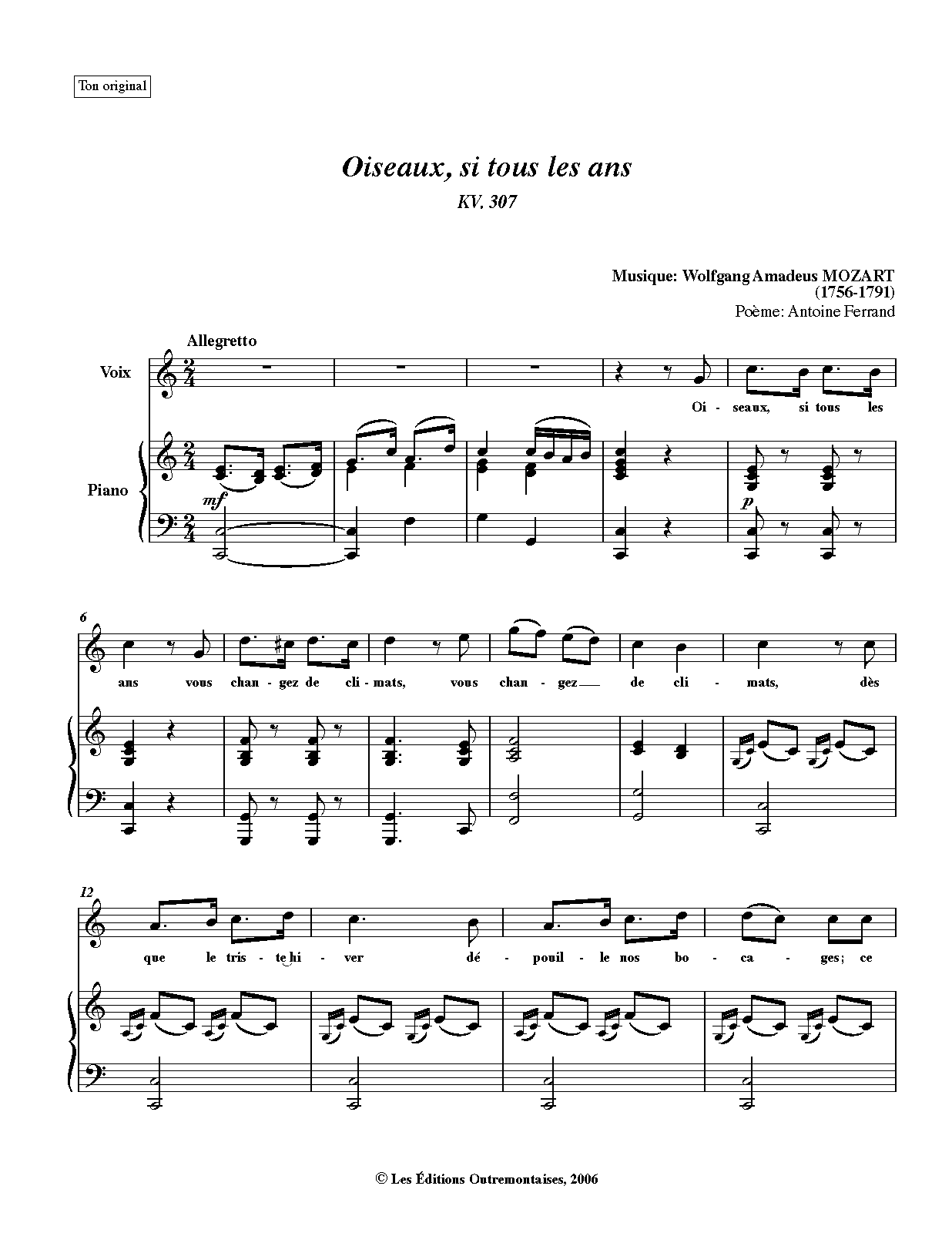 Oiseaux, si tous les ans, K.307/284d (Mozart, Wolfgang Amadeus)
