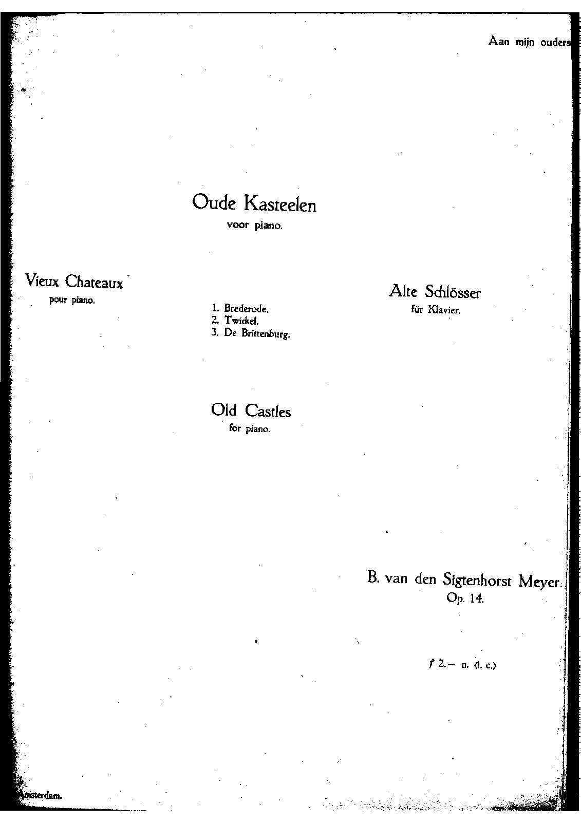 | Alternative. Title | Oude Kasteelen voor piano Vieux Chateaux pour piano Alte Schlösser für Klavier |