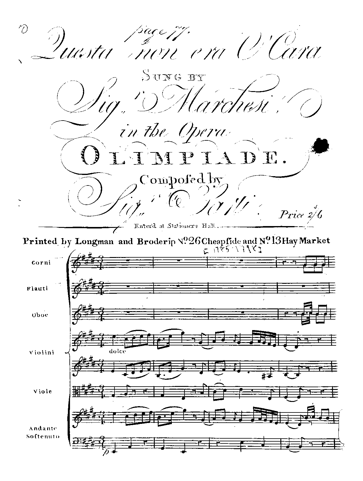 | First Performance. | 1778 |