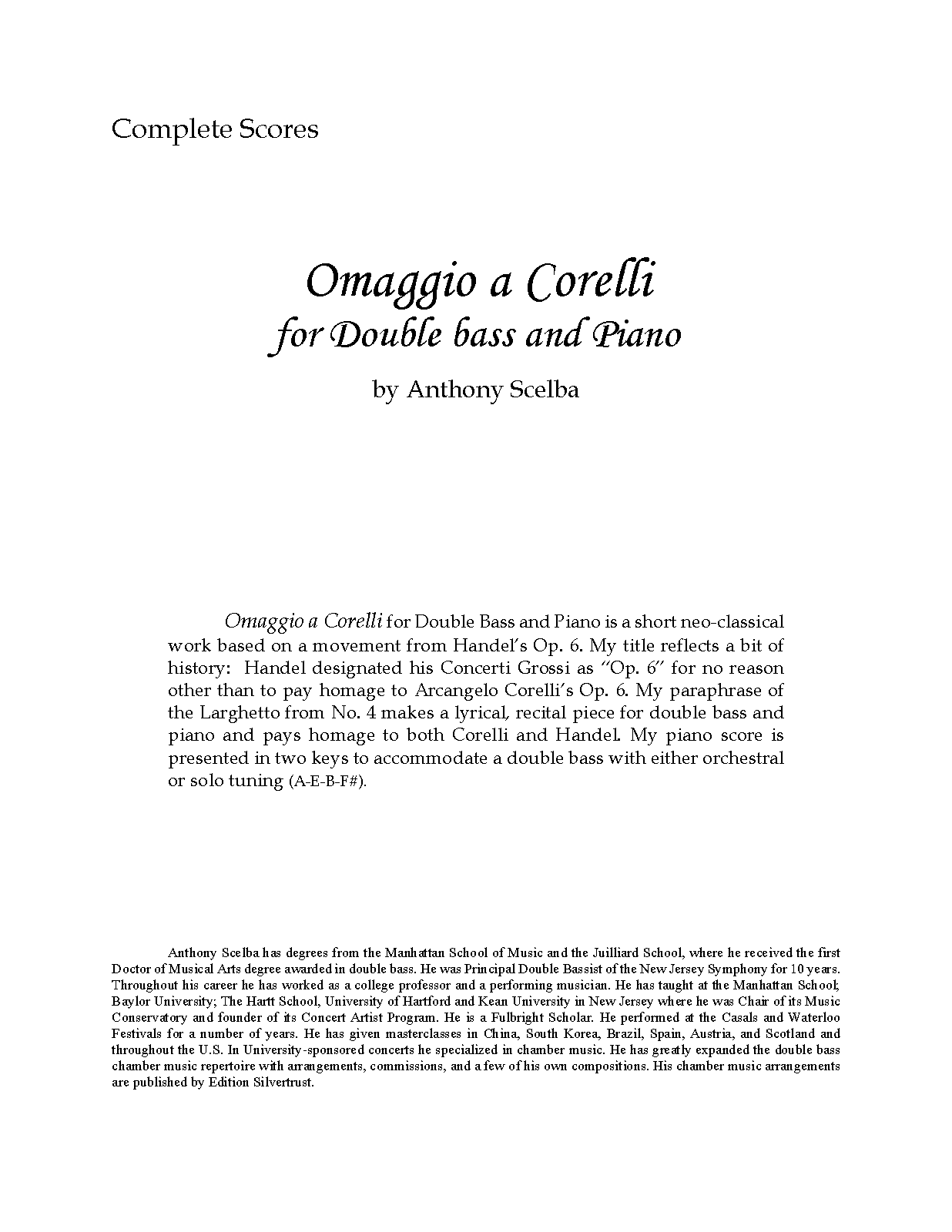 | Work Title | Omaggio a Corelli for Double Bass and Piano |