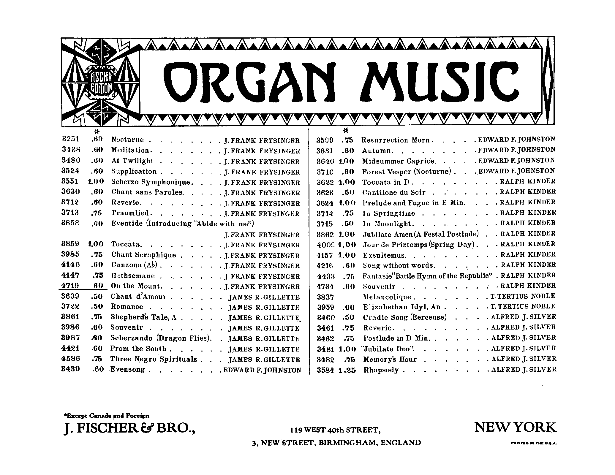 Publisher. Info. New York: J. Fischer & Bro., 1920. Plate J.F. & B. 4719.