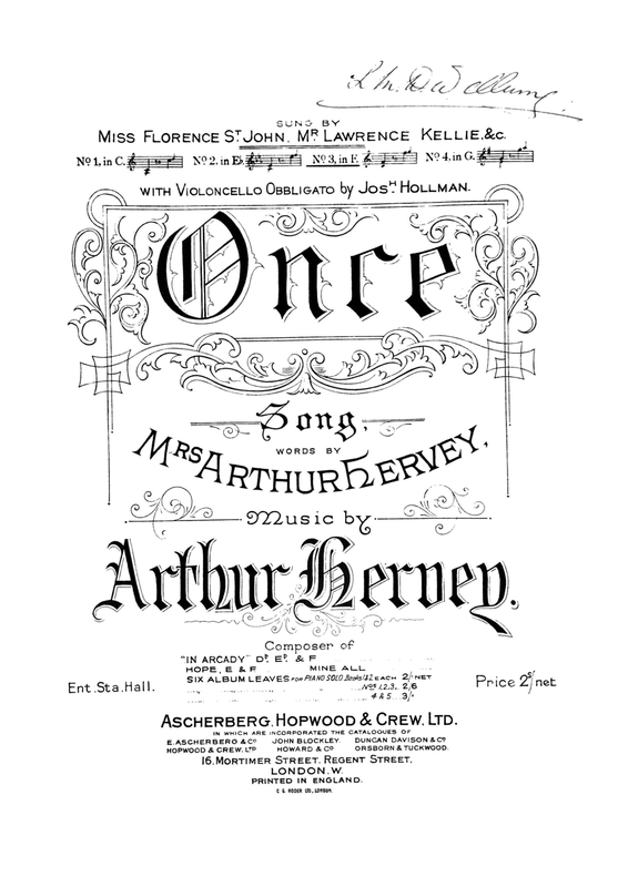 | Extra Information | Published in C major, E♭ major, F major and G major. Cello obbligato by Joseph Hollman. Librettist shown either as Mrs. Arthur Hervey or as Mrs. Hume Webster (her previous married name). |