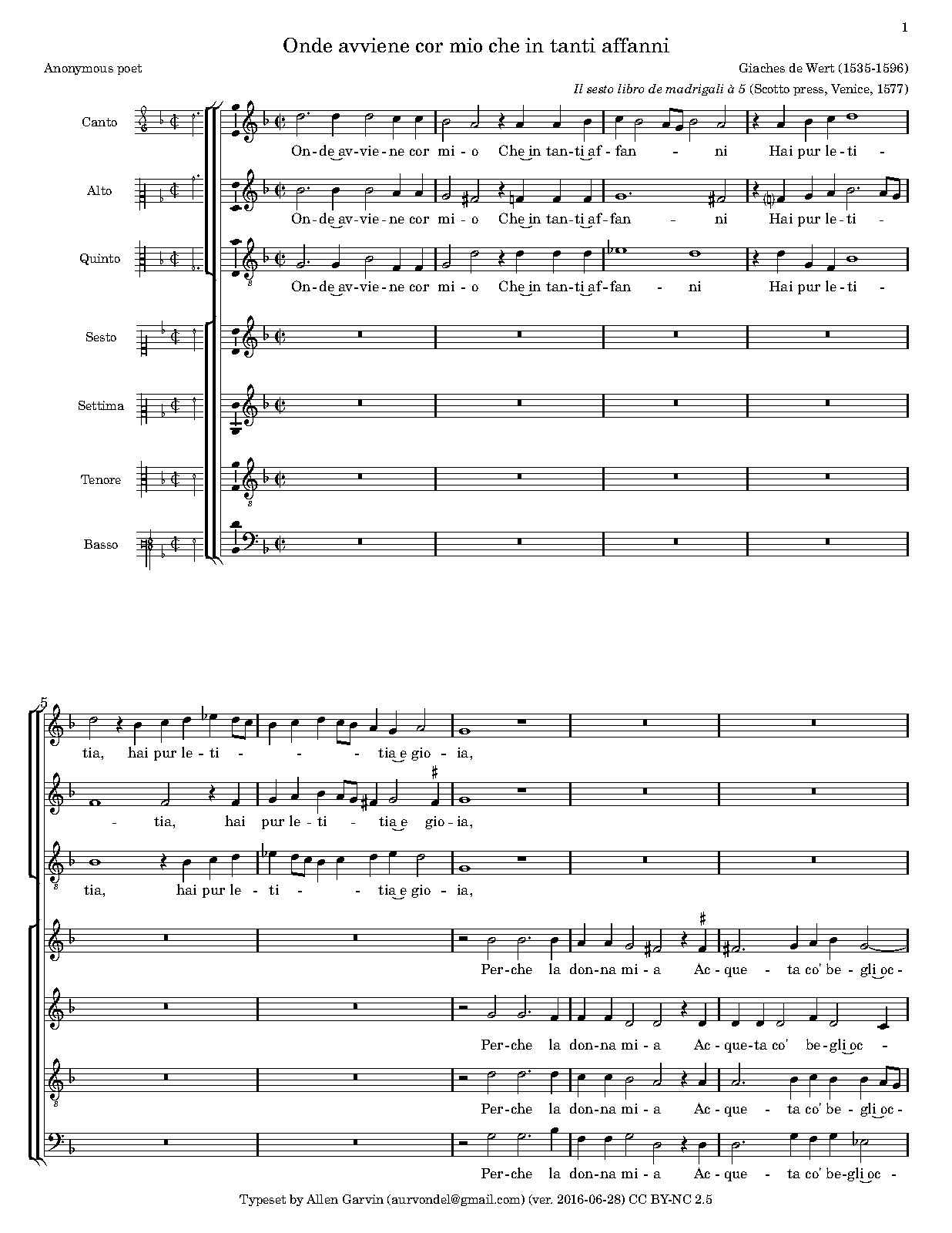 | Work Title | Onde avviene cor mio che in tanti affanni |