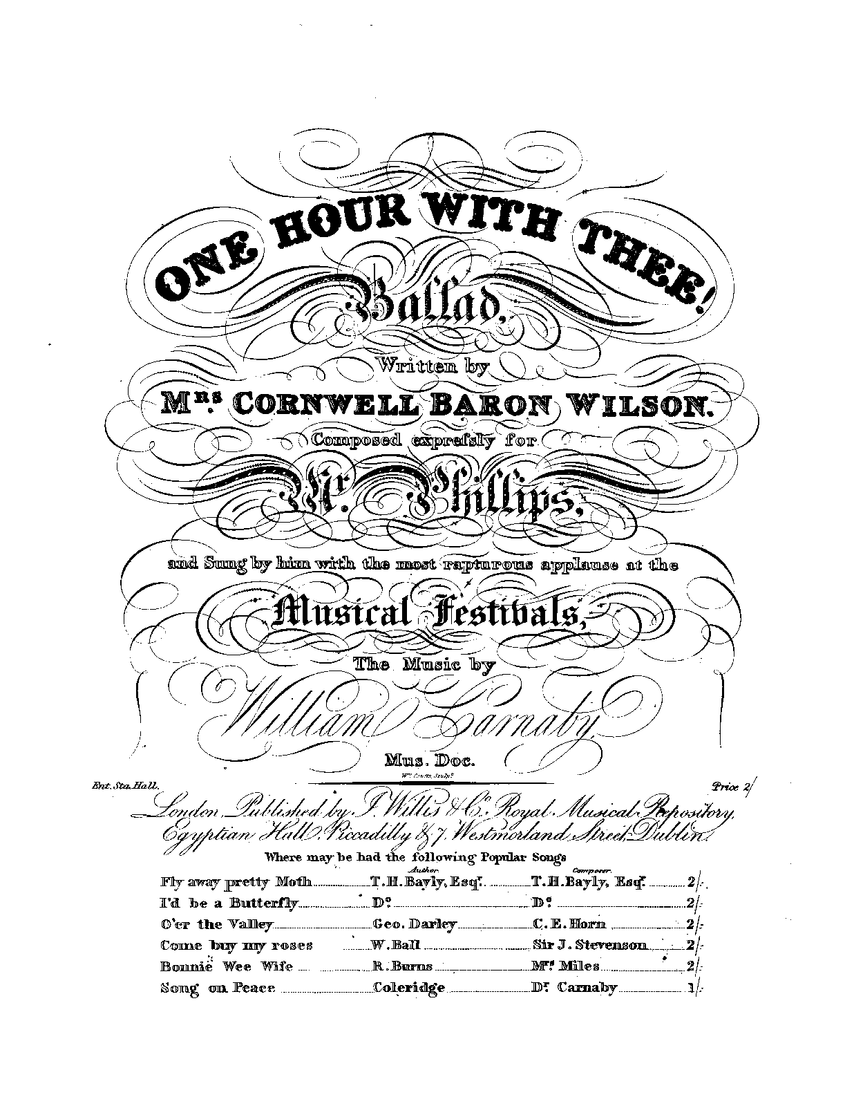 | Librettist | Margaret Harries Wilson (1796–1846) (Mrs. Cornwell Baron Wilson) |