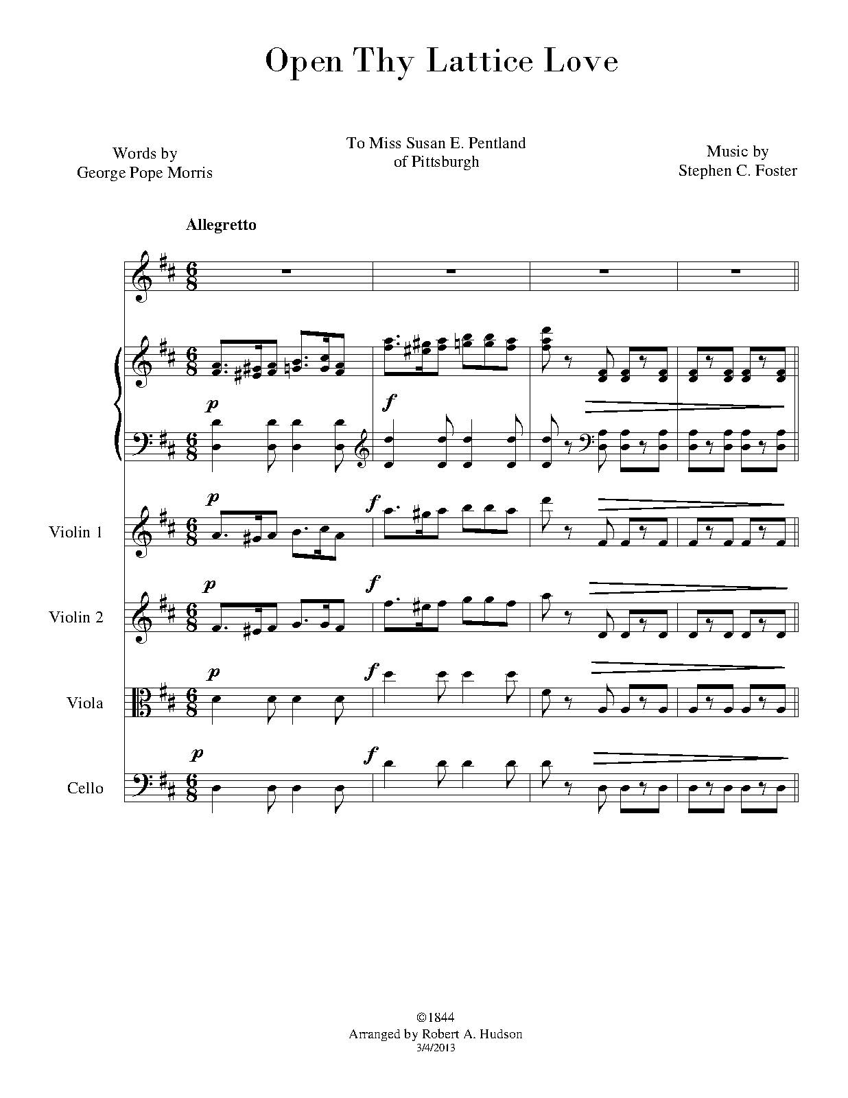 For Mixed Chorus, String Quartet and Piano (Hudson)