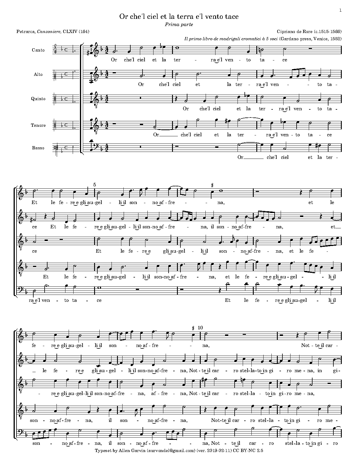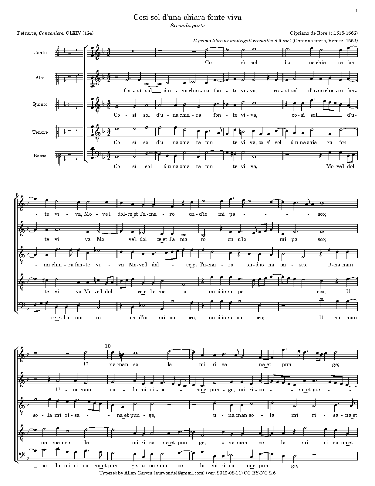 | First Publication | 1552 in Madrigali a 5 voci, Libro 1 (no.2) |