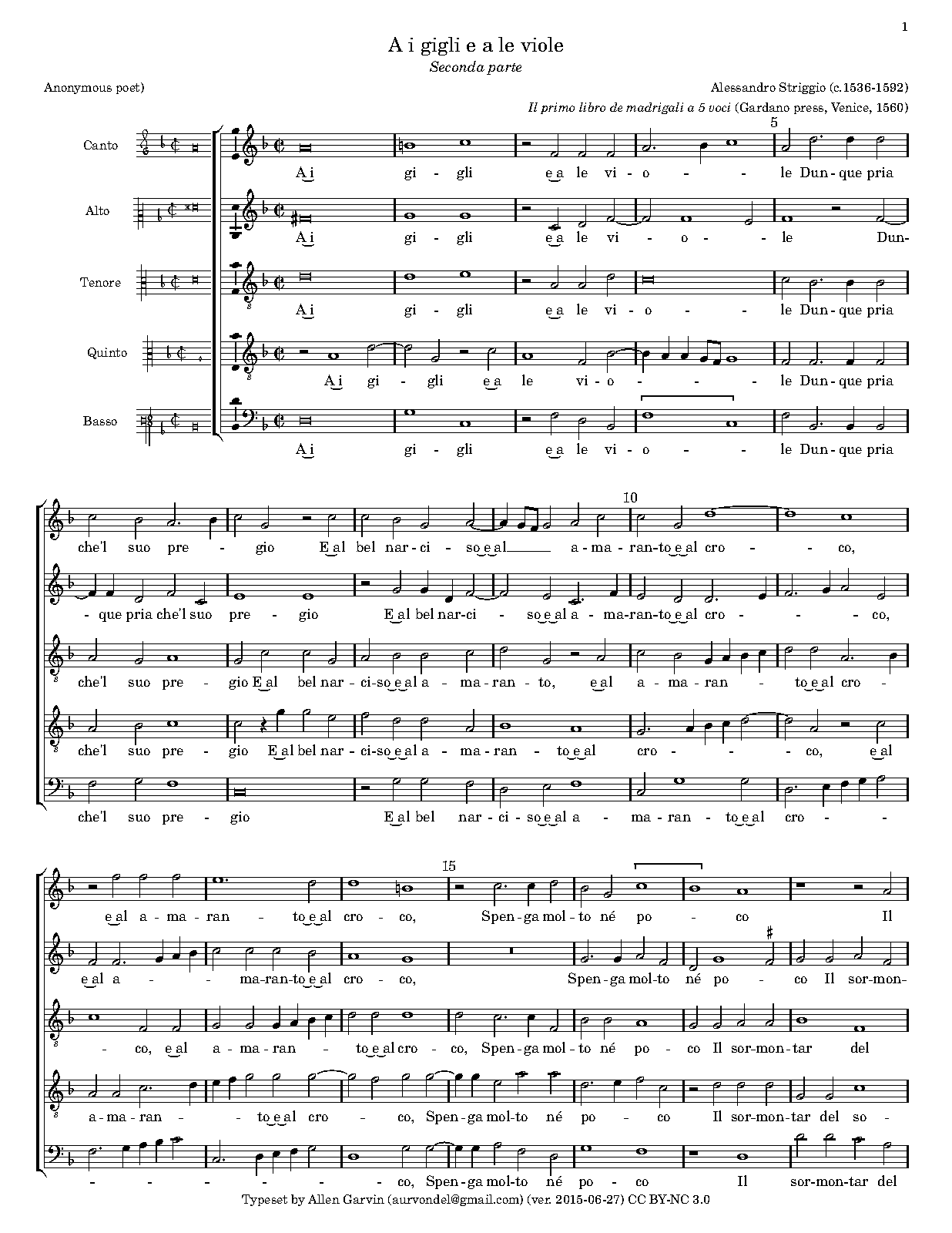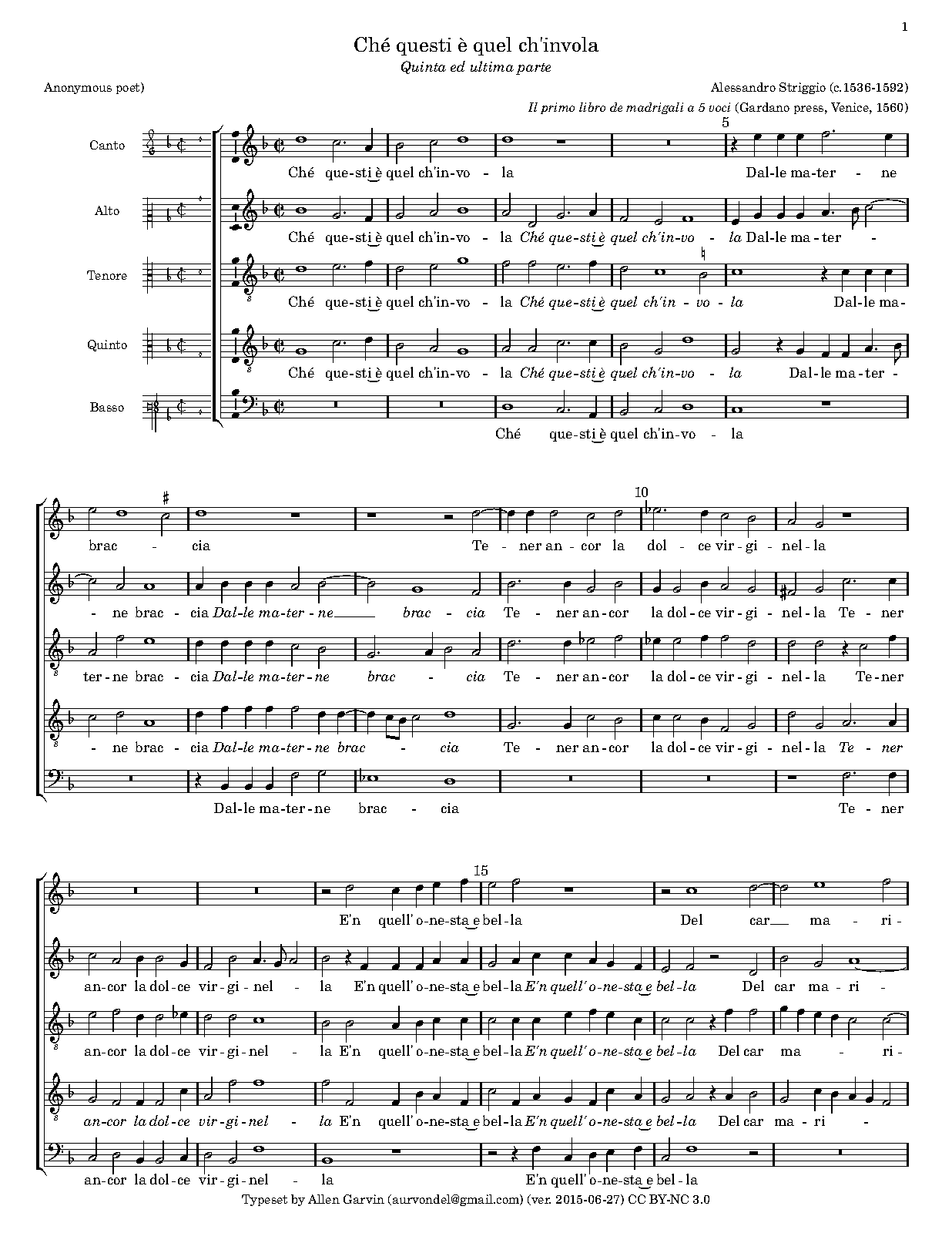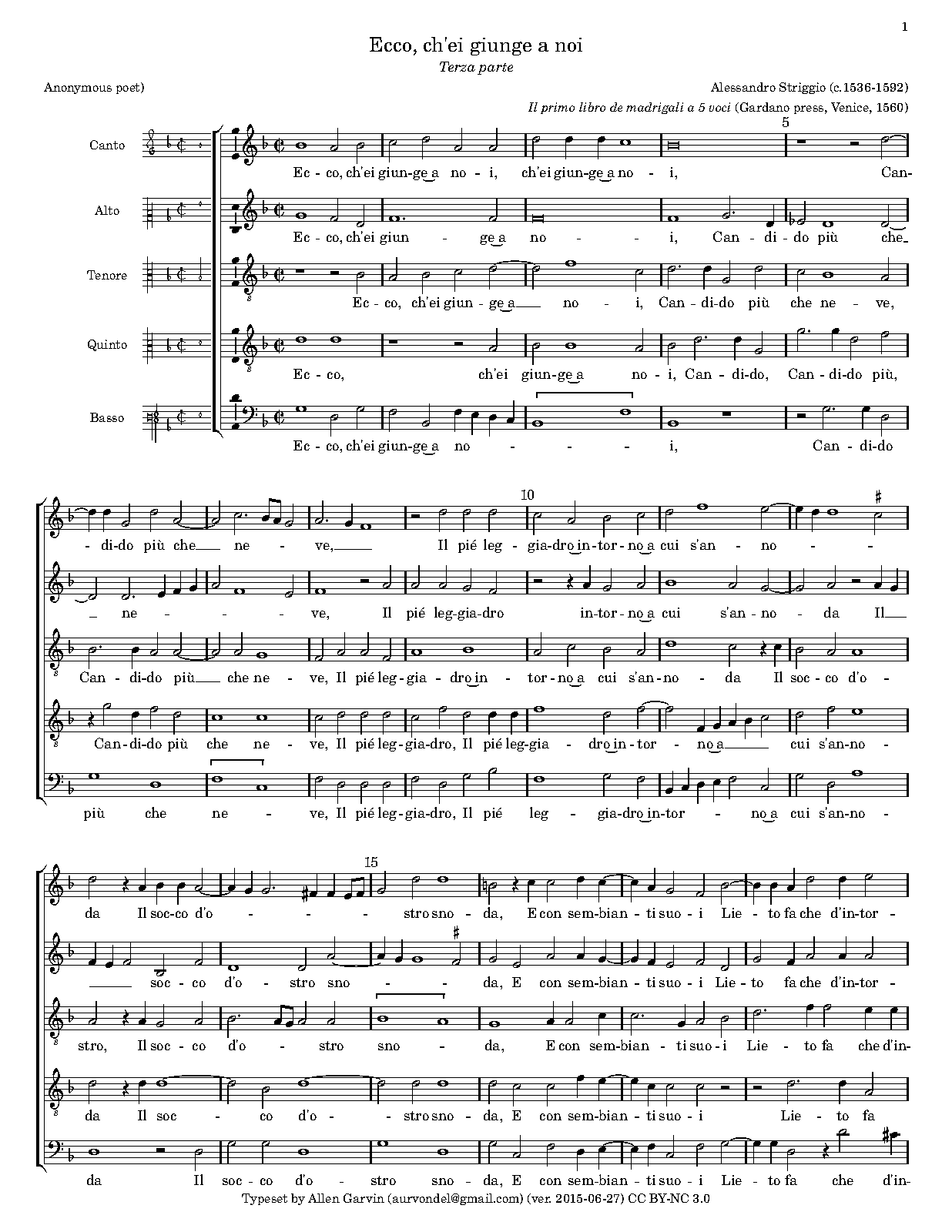 | First Publication | 1560 in Il Primo Libro de Madrigali a 5 voci (Striggio, Alessandro) (No.3) |
