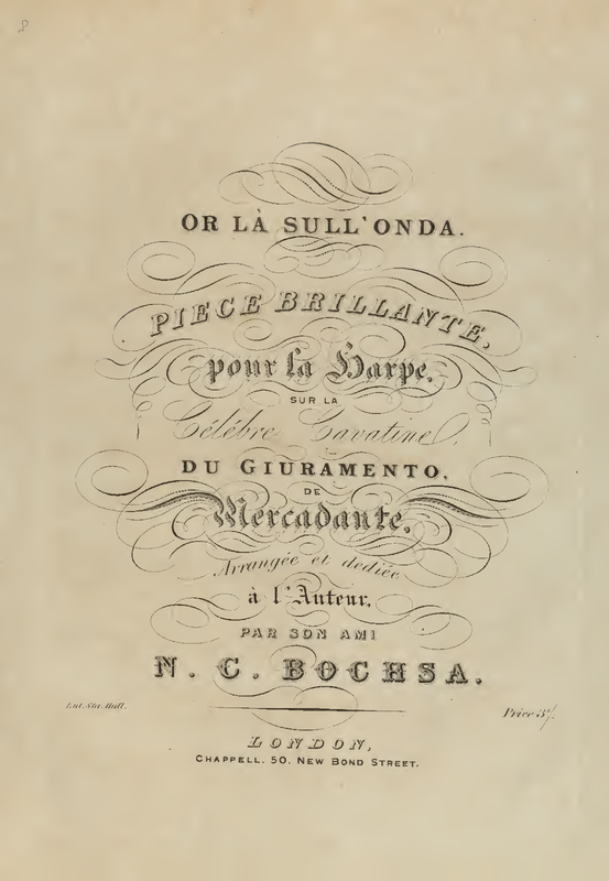 | Alternative. Title | Pièce brillante, pour la harpe, sur la célébre cavatine du giuramento de Mercadante |