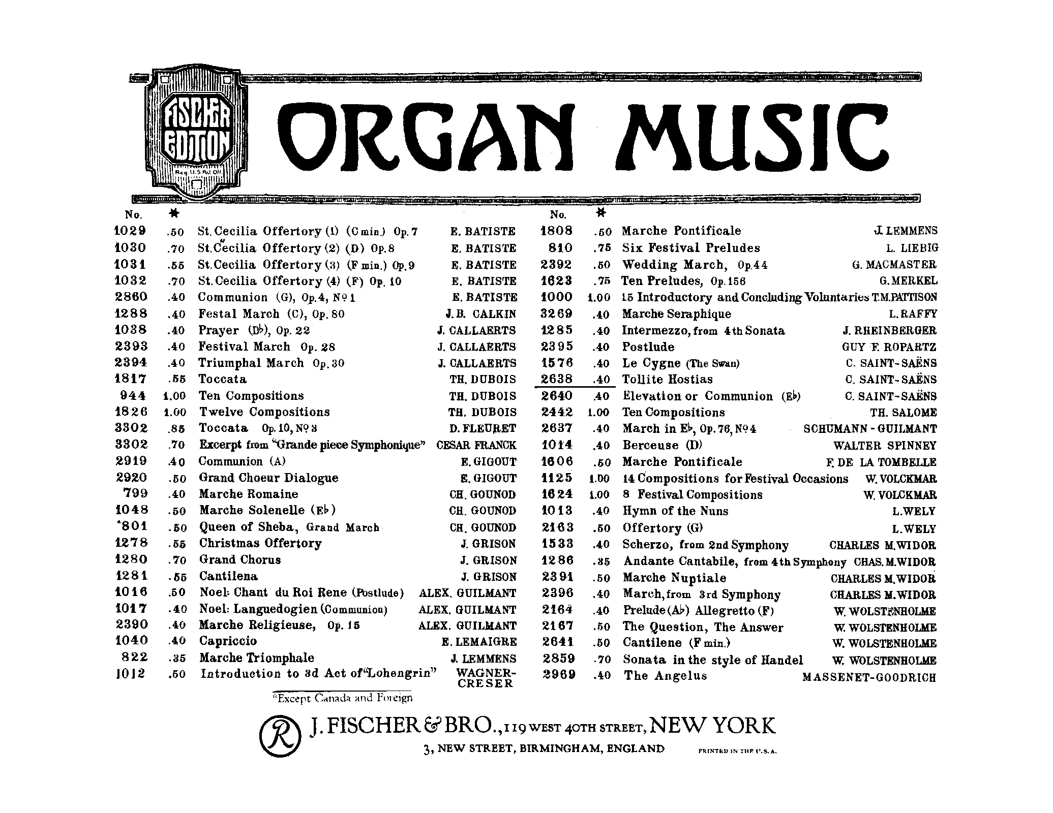 Publisher. Info. New York: J. Fischer & Bro., 1904. Plate J.F. & B. 2638.