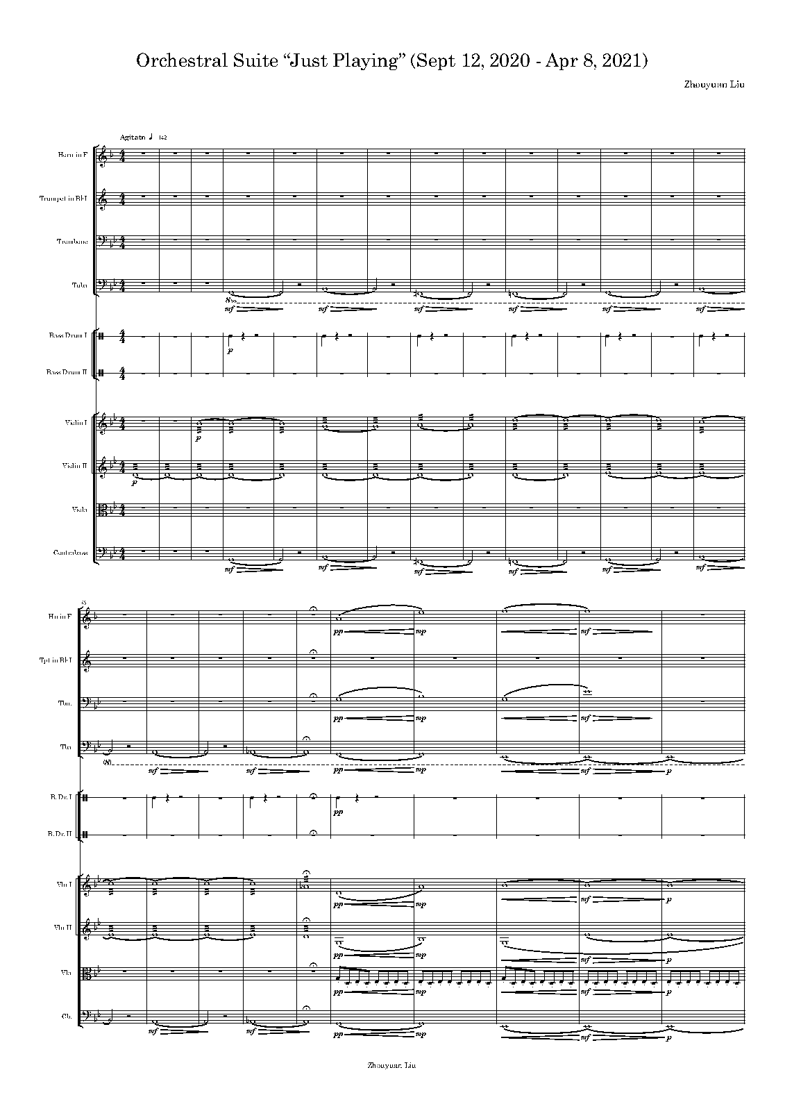 | Work Title | Orchestral Suite "Just Playing": Composed from September 12, 2020, to April 8, 2021. |