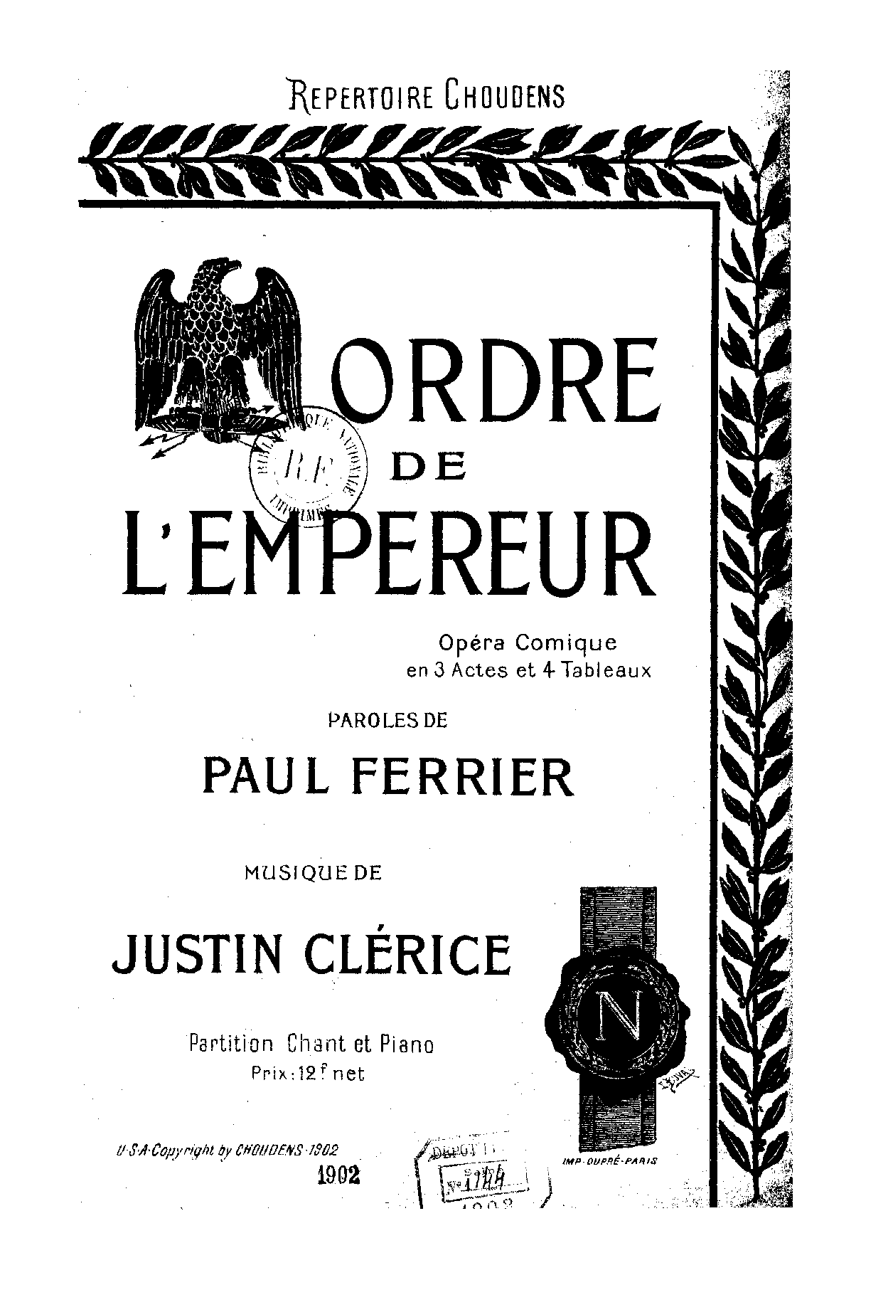 | Copyright Information | Publication noted in the Bibliographie de la France : 91e année, 2e série, Nº 12, 22 Mars 1902, pp.194-95, reg.1454 (vocal score). |