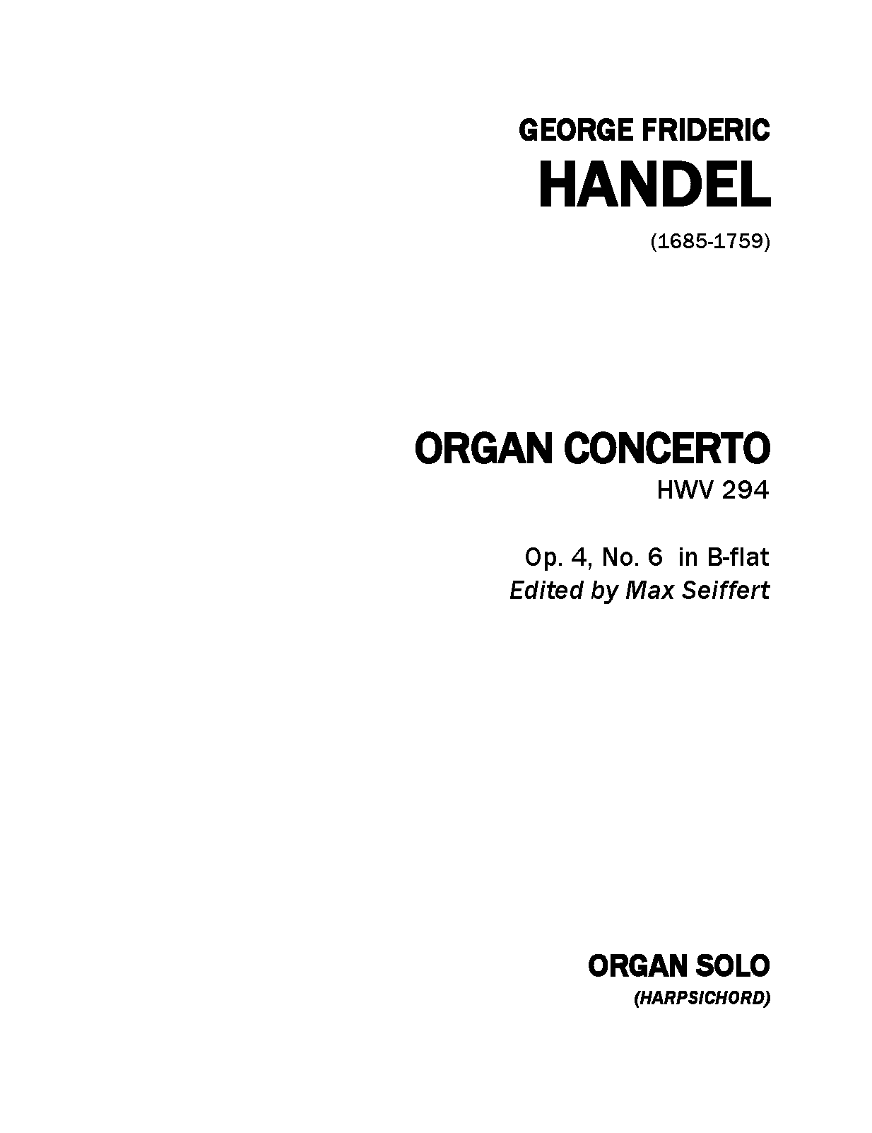 Publisher Info. The Organ Concertos of Handel Nos. 1-6, Op.4