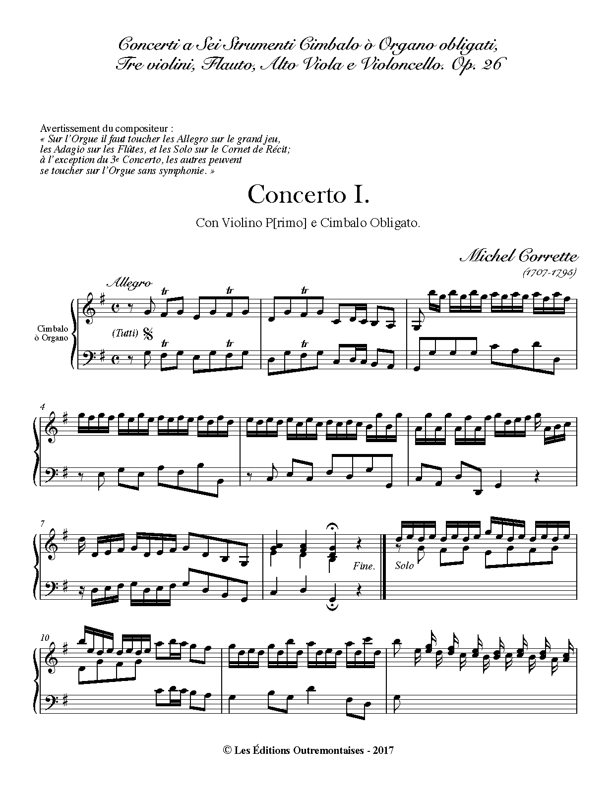 | First Publication. | 1756 in 6 Organ Concertos, Op.26 (No.1) |