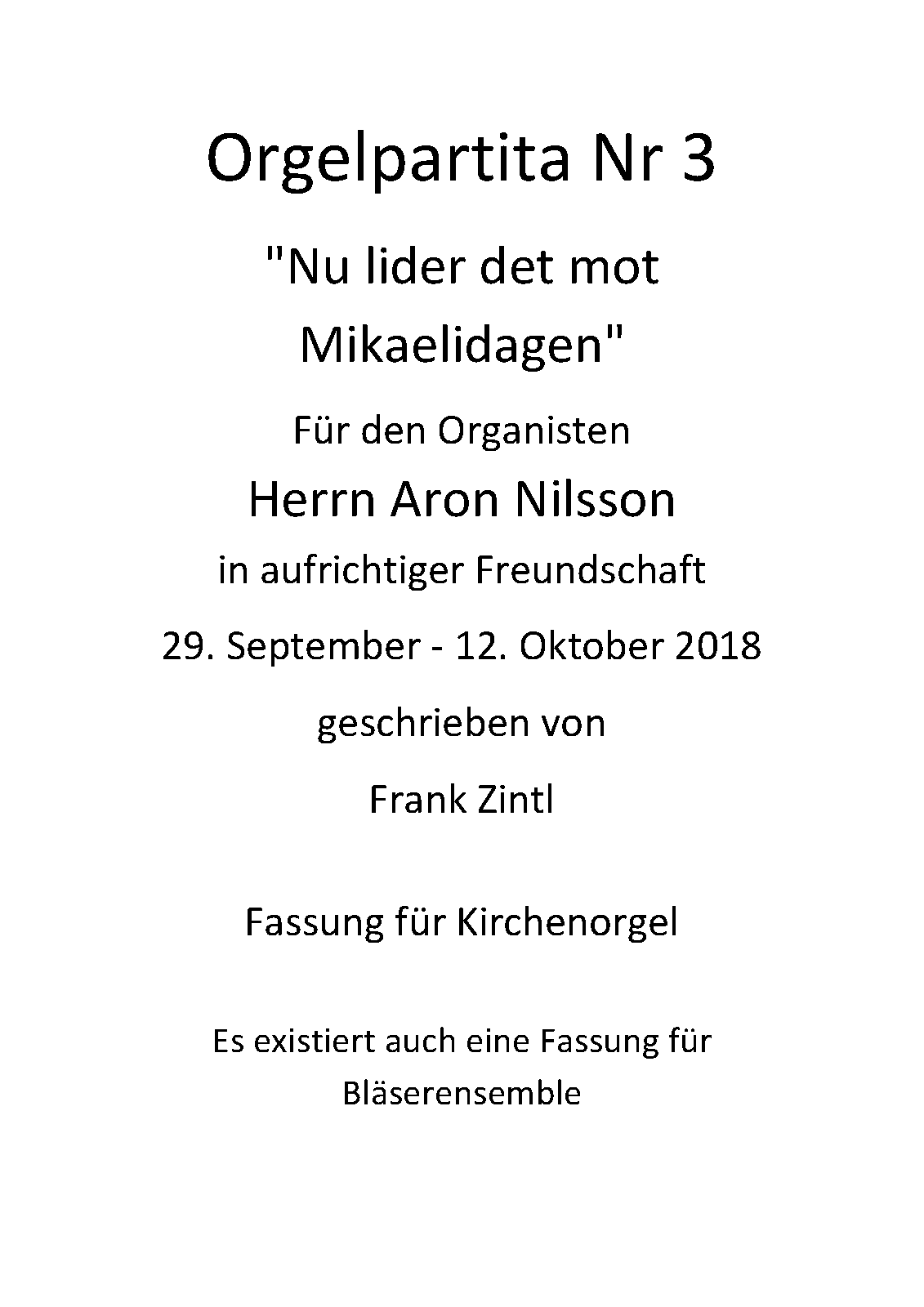 Alternative. Title Organ Partita 3 'Nu lider det mot Mikaelidagen'